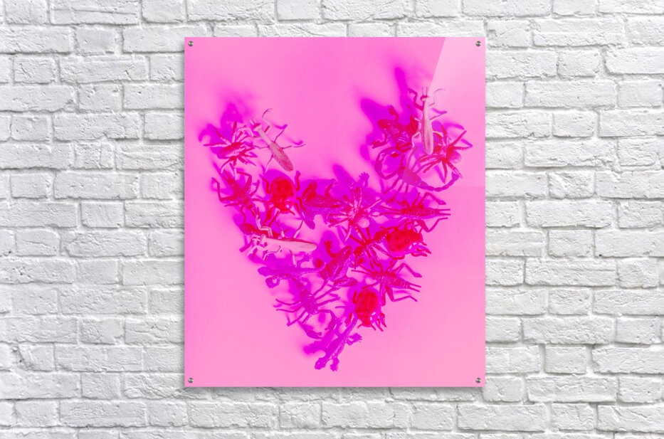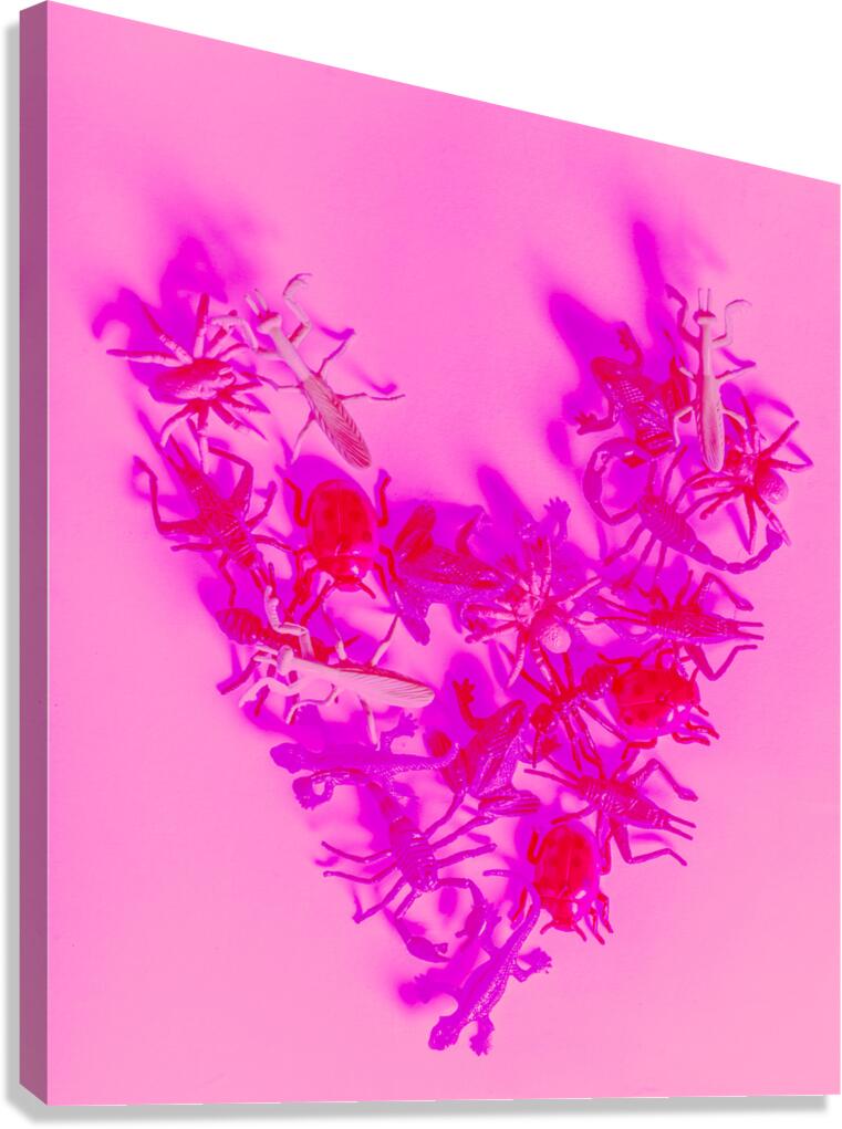 Creative wildlife artwork on a grouping of pink animals unifying in a harmonious heart. Love bug pop heart