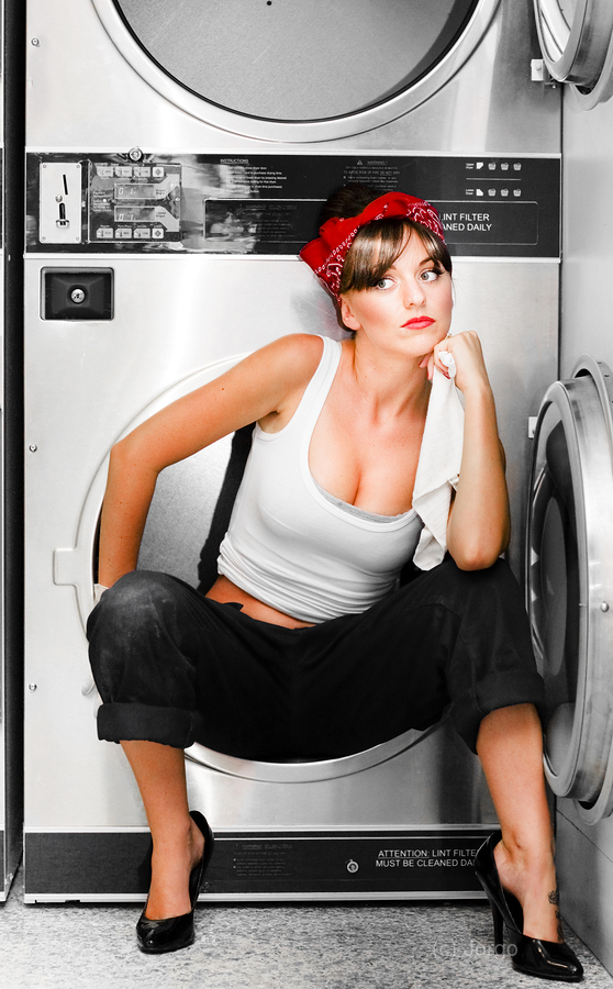 Dreaming Cleaning Lady Sits In A Washing Machine Thinking In Wonder About The Vision Of A Bigger Brighter Future For She Is A Cleaning Lady With A Dre...[+]