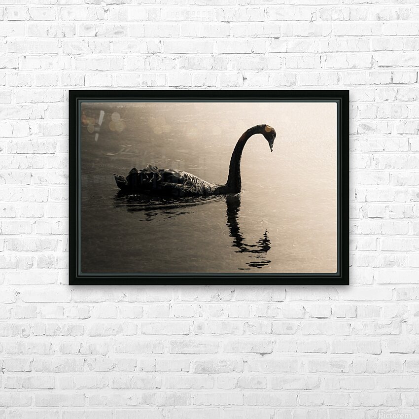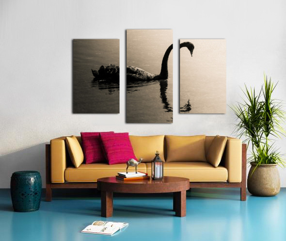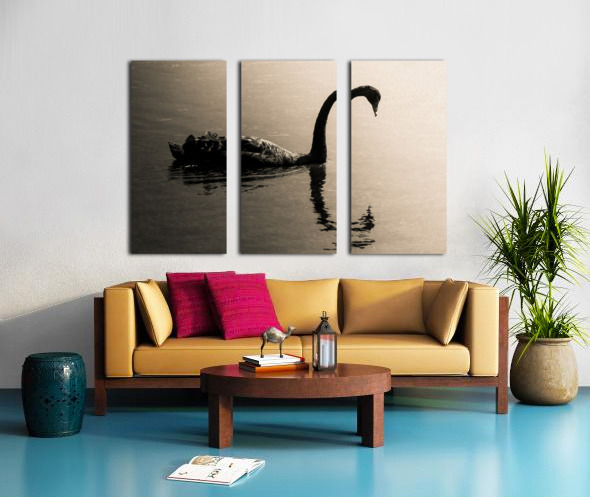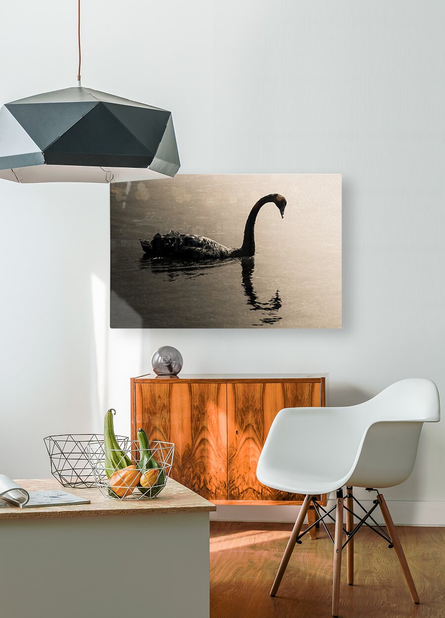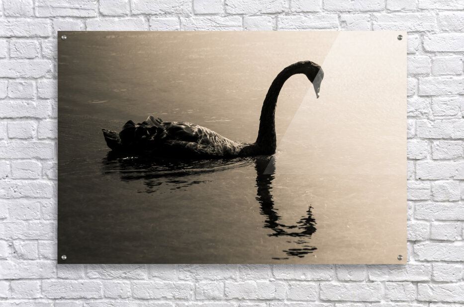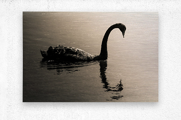 Ornate wild art on a black swan silhouetted in classical elegance. Lake Samsonvale Queensland Australia