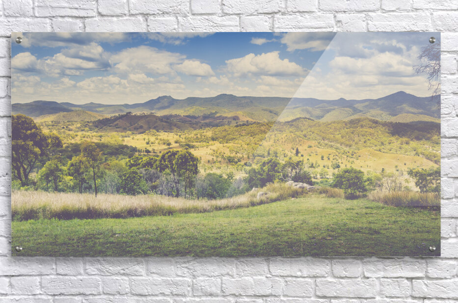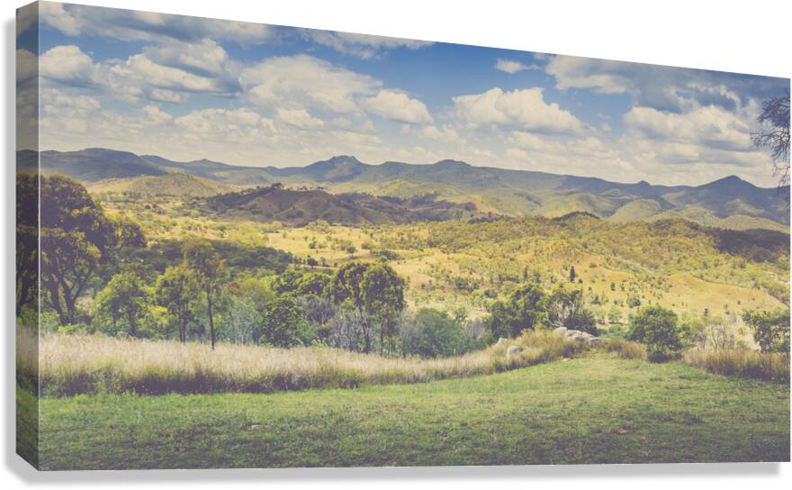 Mountain wide view on a harmonious valley of beautiful visual delights. Mt Perry Queensland Australia