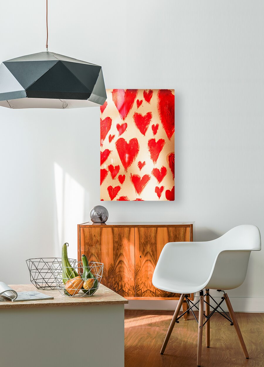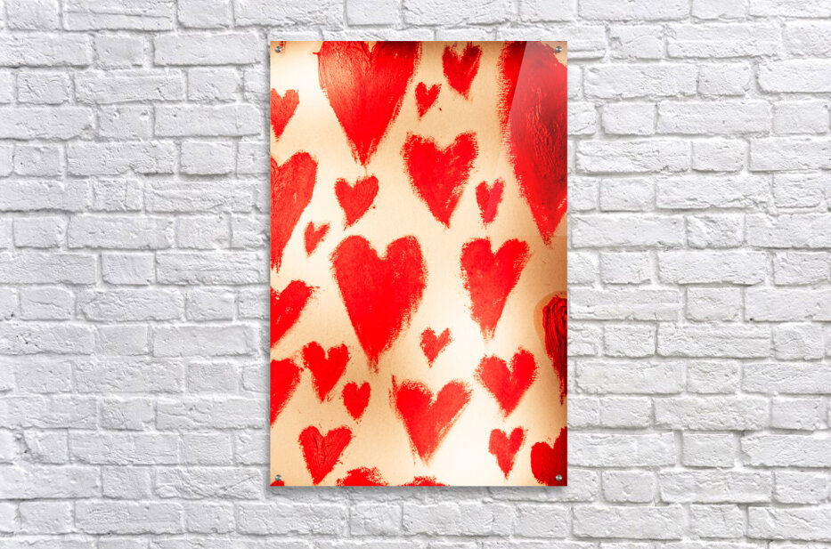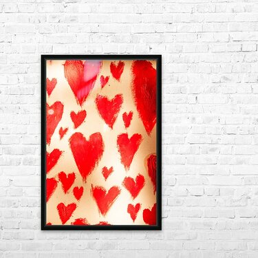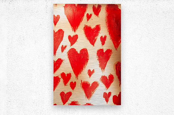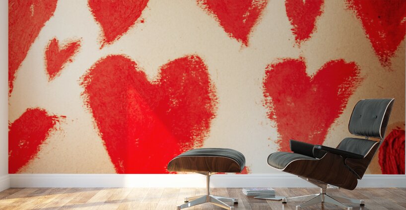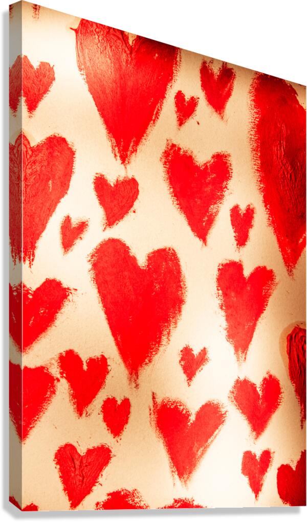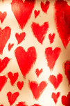 Nostalgic hand painting of red valentines day hearts on paper background. Romance in art