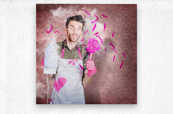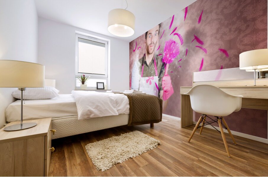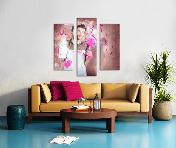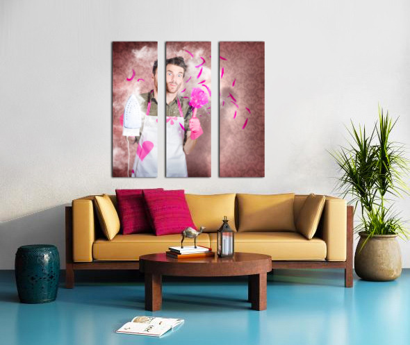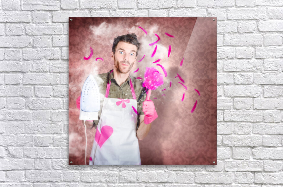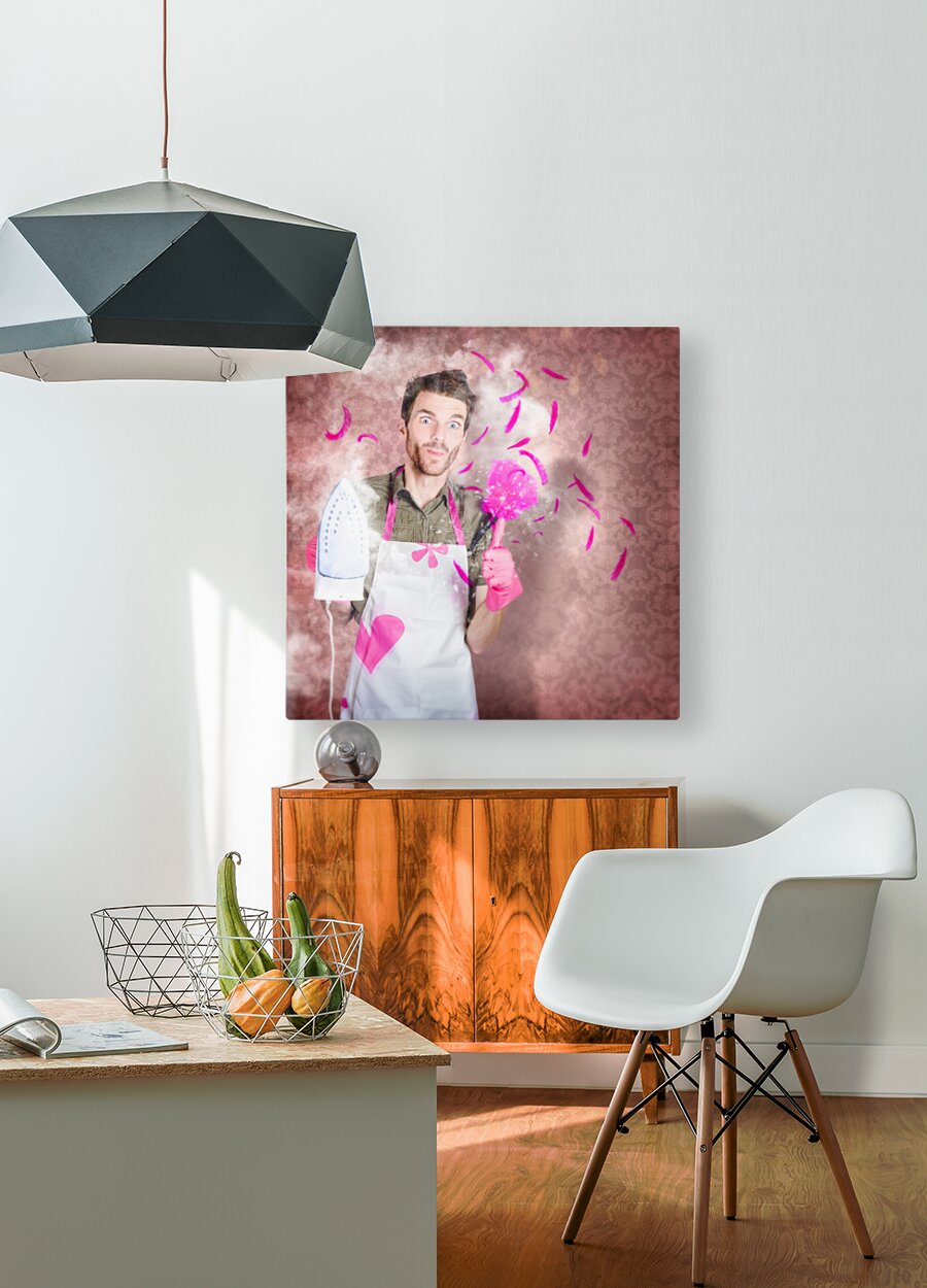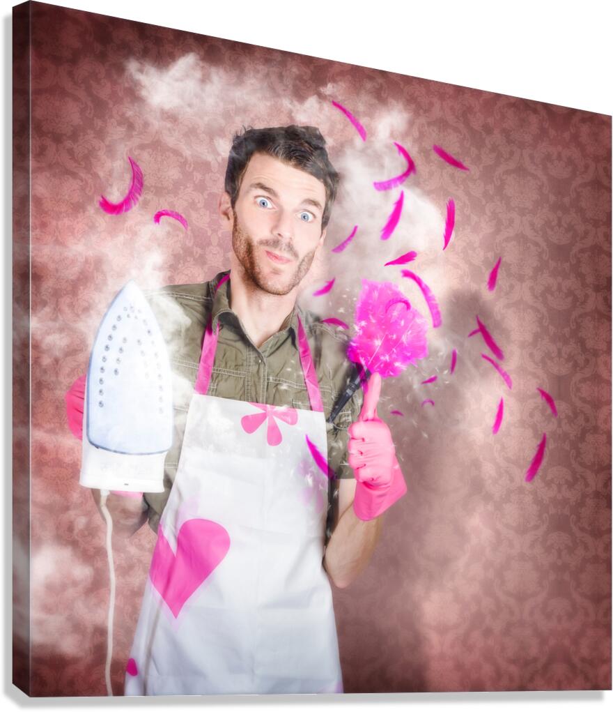 ABOUT THIS ARTWORK: FUNNY CLEANING MAN DOING HOUSEWORK CHORES