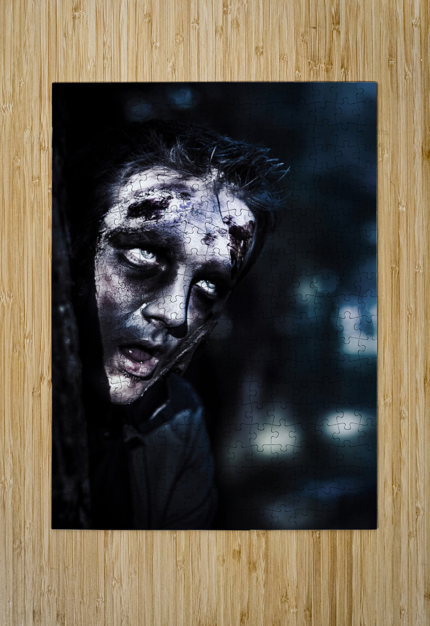 Head of a scary zombie peeking from behind tree Jorgo Puzzle printing