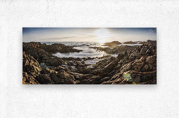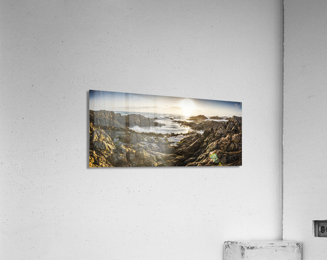 Romantic wide angle panorama landscape on rocky bay with hidden rock heart. Granville Harbour Western Tasmania Australia