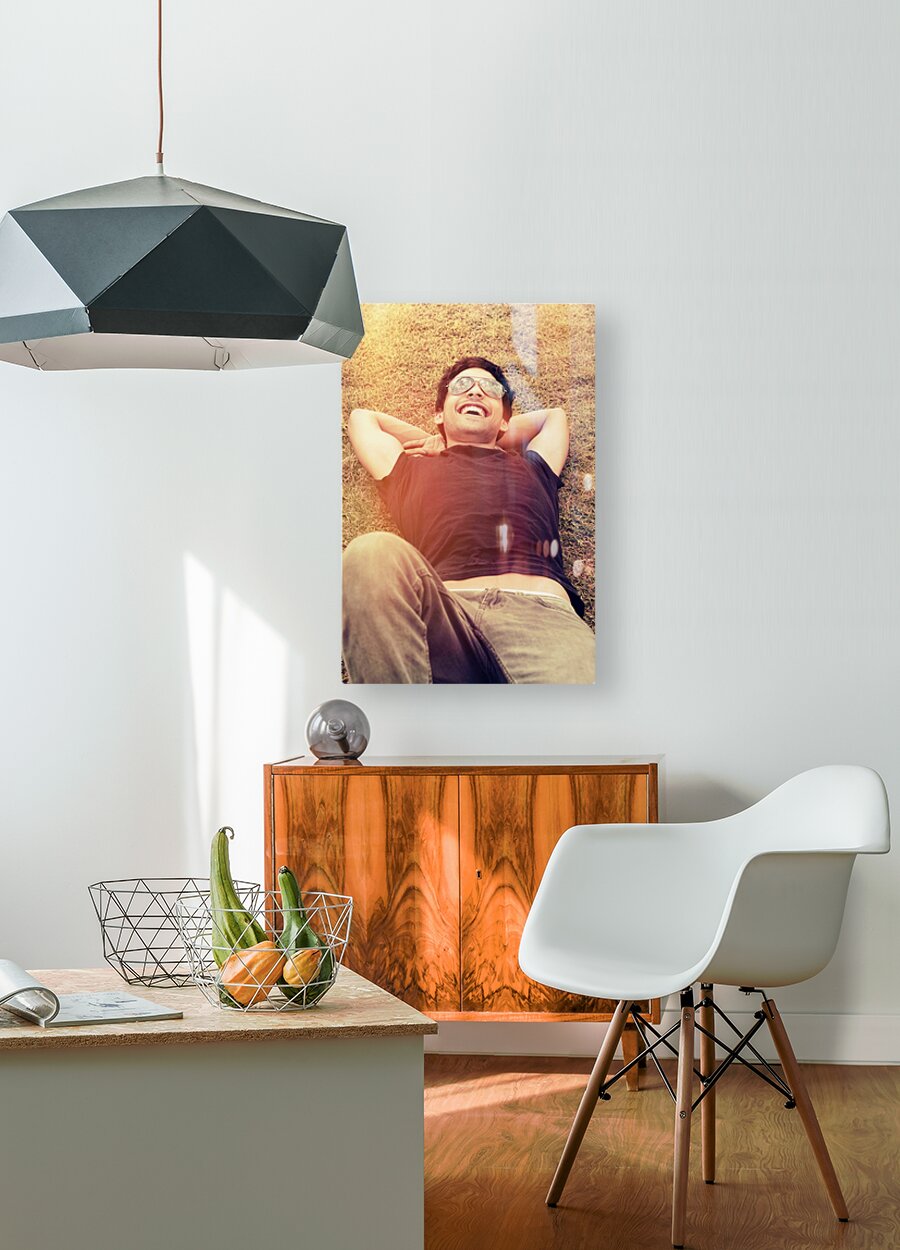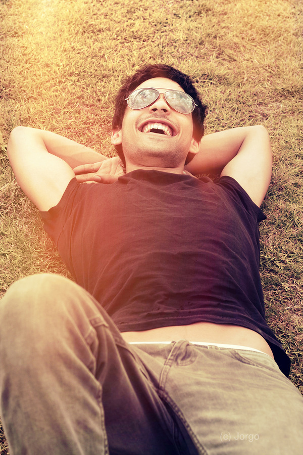 ABOUT THIS ARTWORK: HAPPY MAN LAUGHING WHILE ENJOYING SUMMER HOLIDAYS