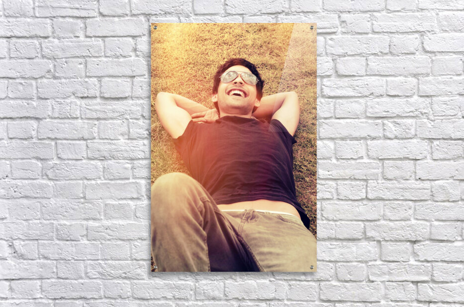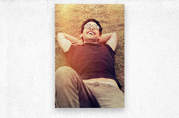 Happy man laughing while enjoying summer holidays Picture Frame Printing