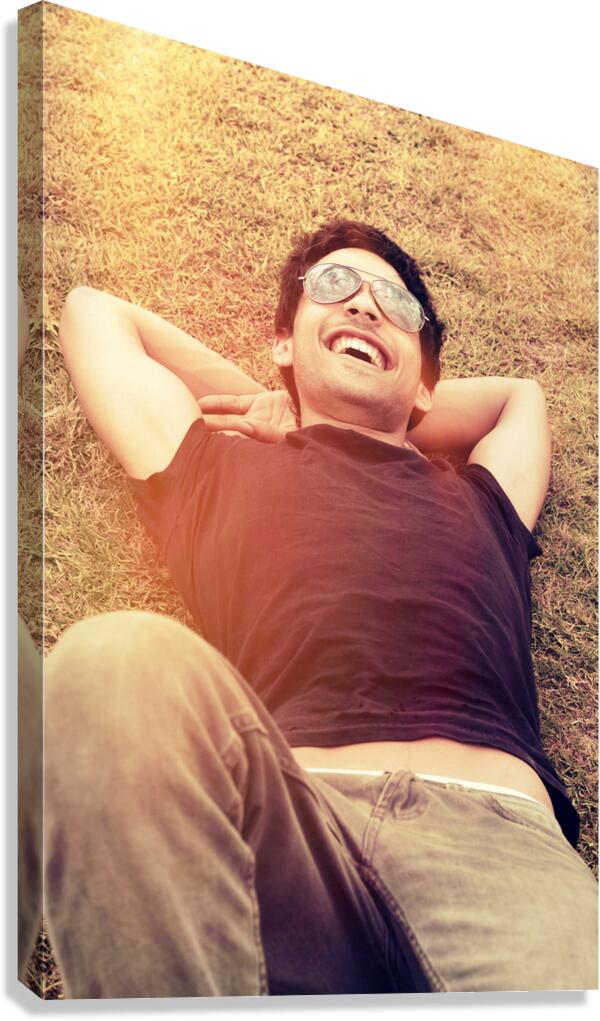 Get this artwork "Happy man laughing while enjoying summer holidays" in a framed print.
