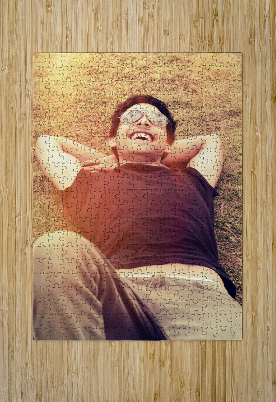 Happy man laughing while enjoying summer holidays Jorgo Puzzle printing