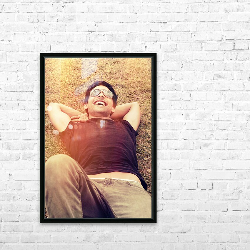 Happy man laughing while enjoying summer holidays Frame print