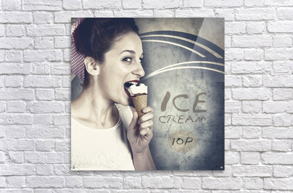 ABOUT THIS ARTWORK: ICE CREAM POSTER GIRL ON VINTAGE ICE-CREAM ADVERT