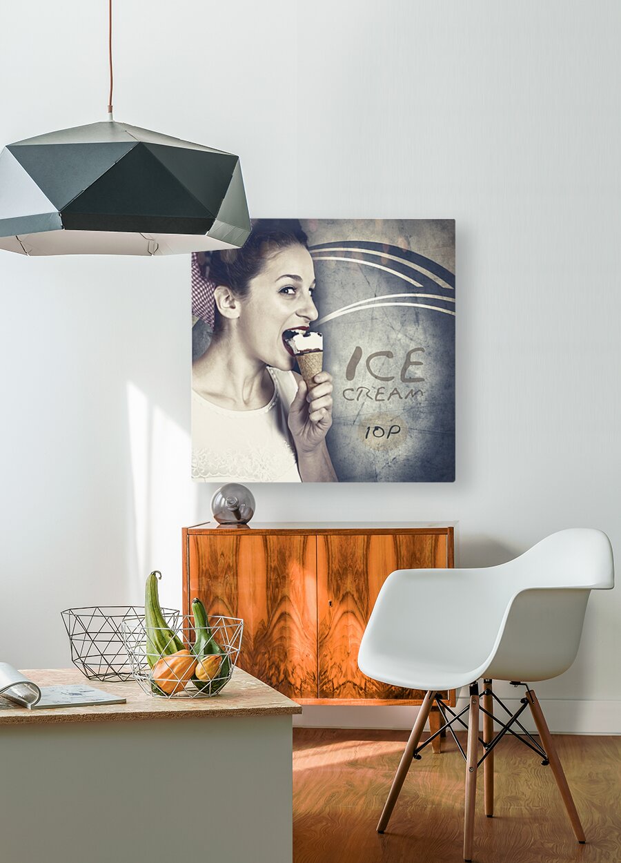 Get this artwork "Ice cream poster girl on vintage ice-cream advert" in a framed print.