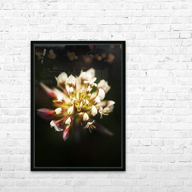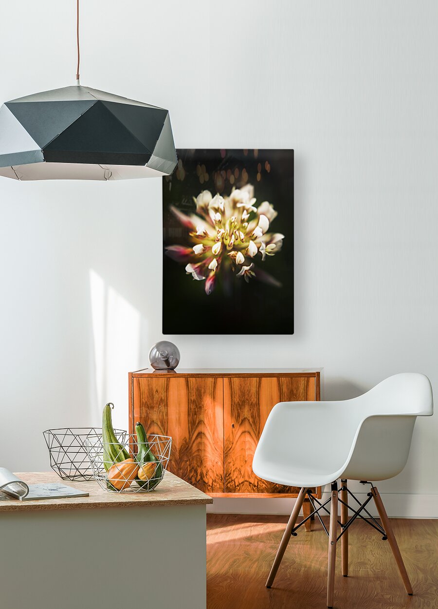 Contrasting flower art of country beauty with a clover flower rising from the fields of wild darkness