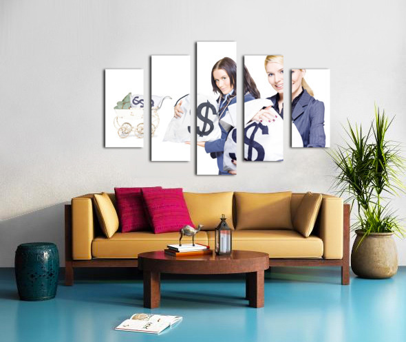 Pretty young business women holding sacks of money Jorgo Puzzle printing