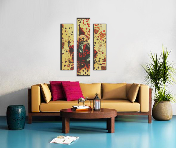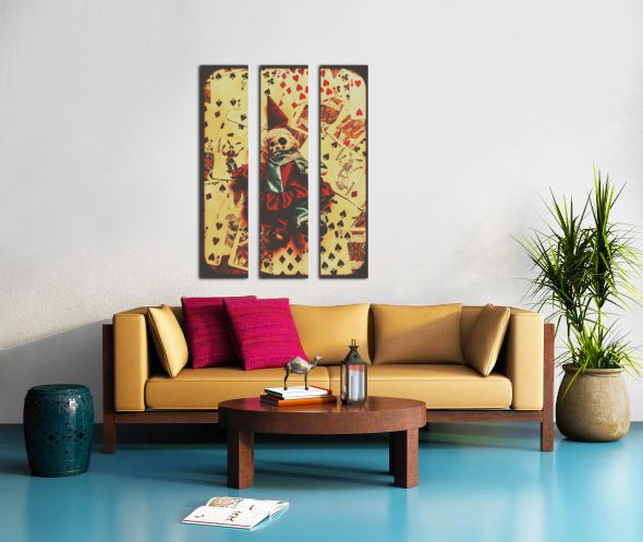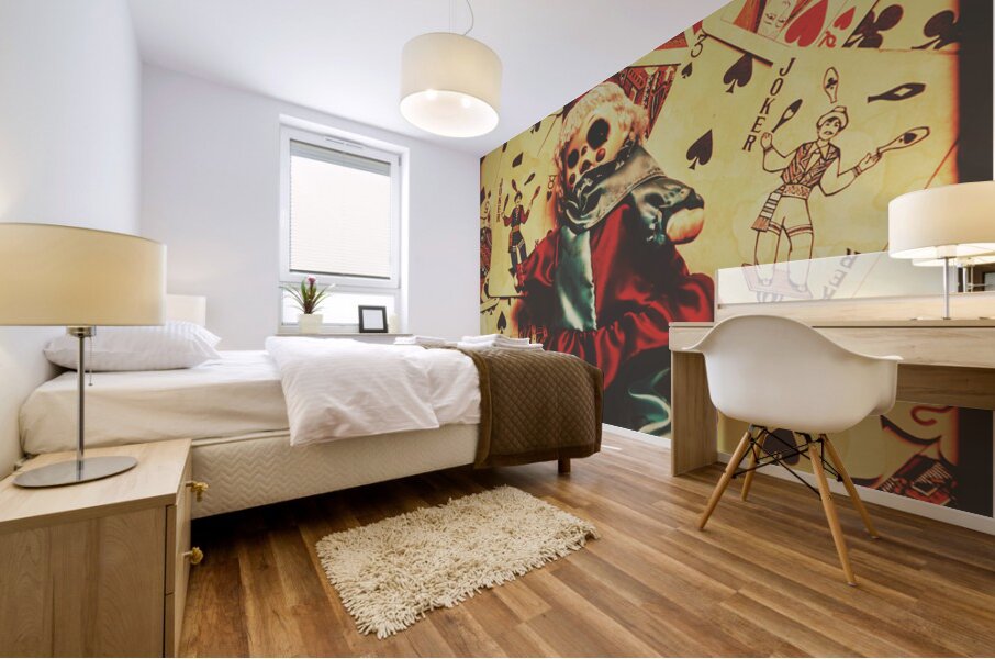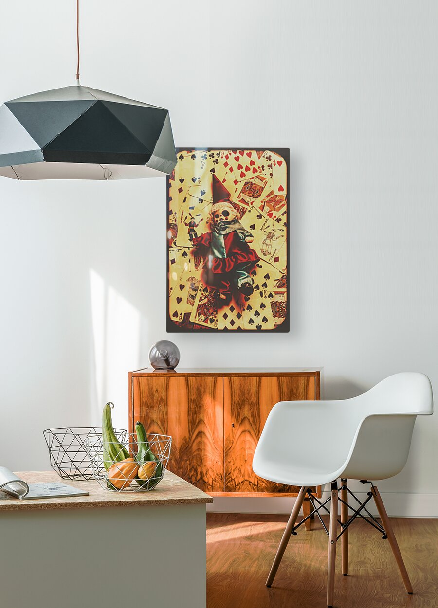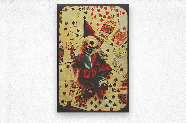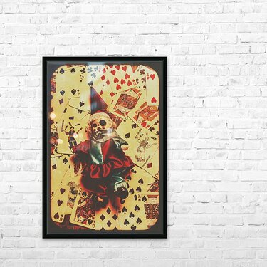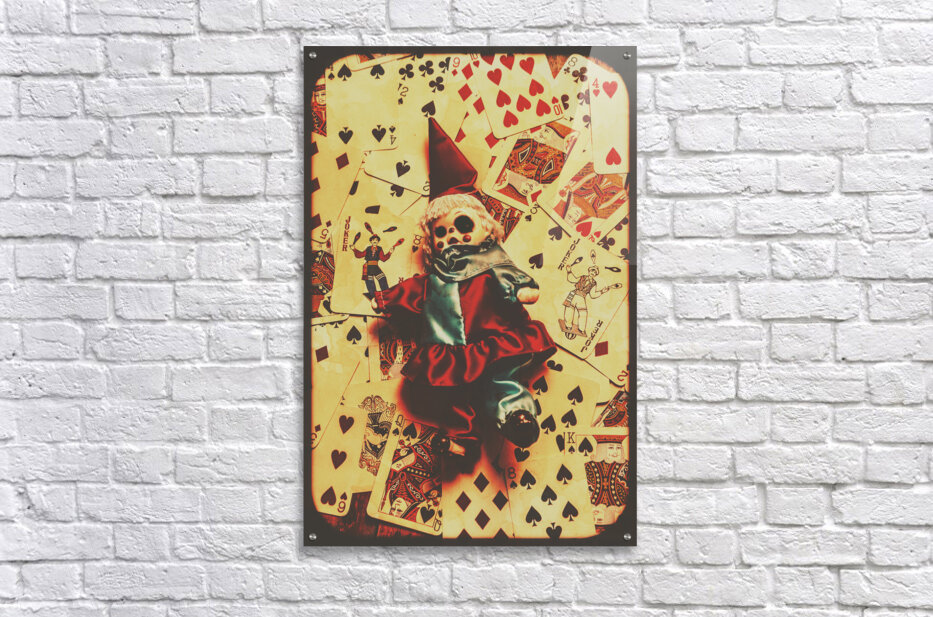 Get this artwork "Evil clown doll on playing cards" in a framed print.