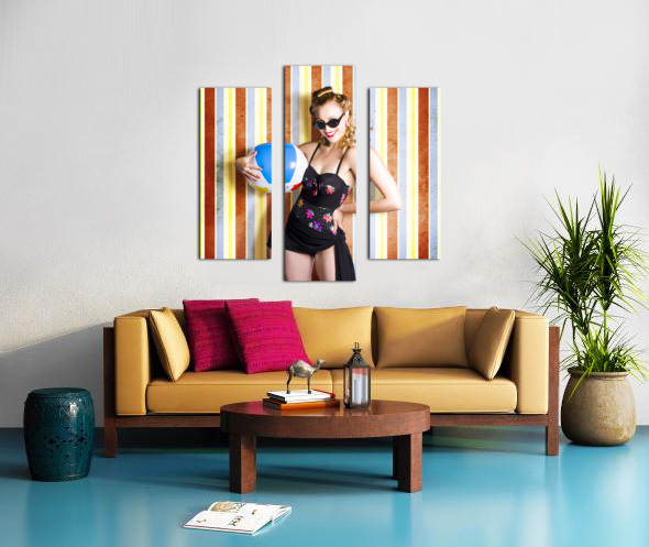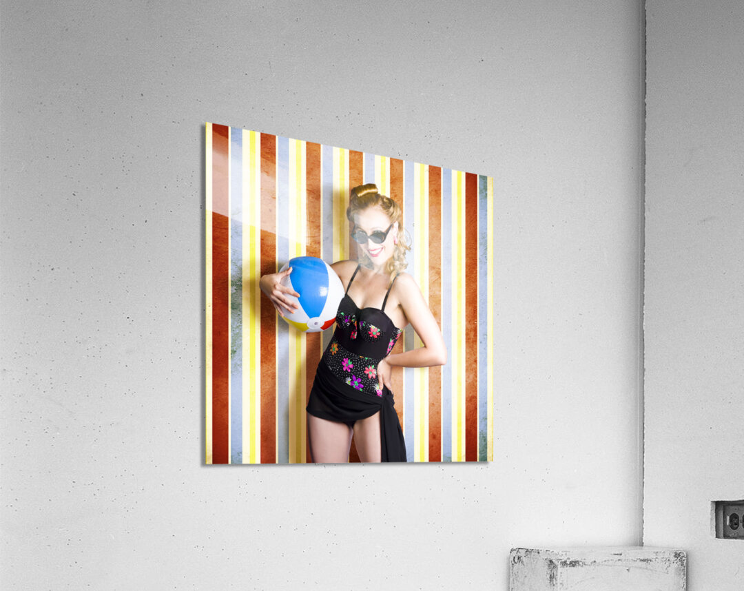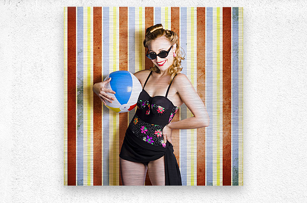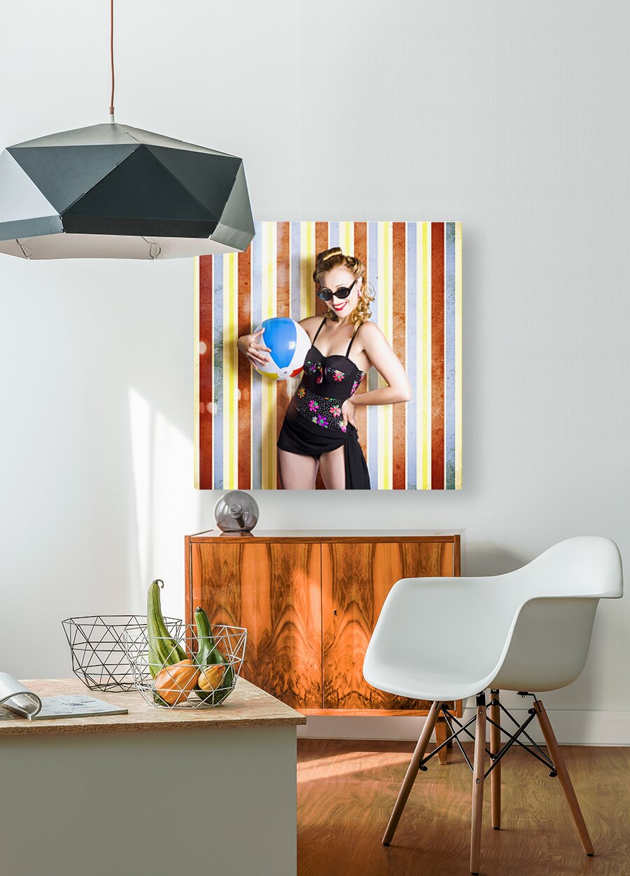 ABOUT THIS ARTWORK: VINTAGE BEACH BABE ON RETRO BACKGROUND