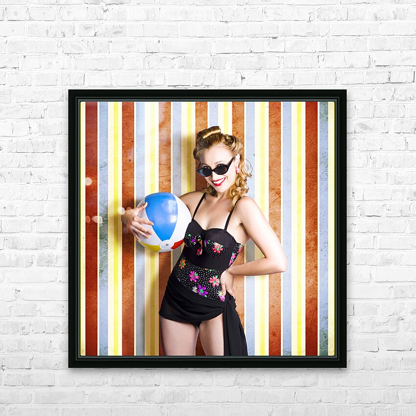 Vintage Beach Babe On Retro Background Picture Frame Printing