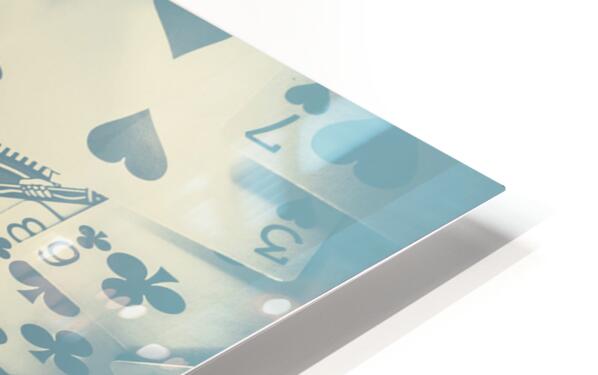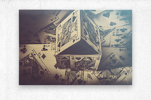 Creative blue toned artwork on a stack of betting cards assembled in a winning balance play. House that poker built