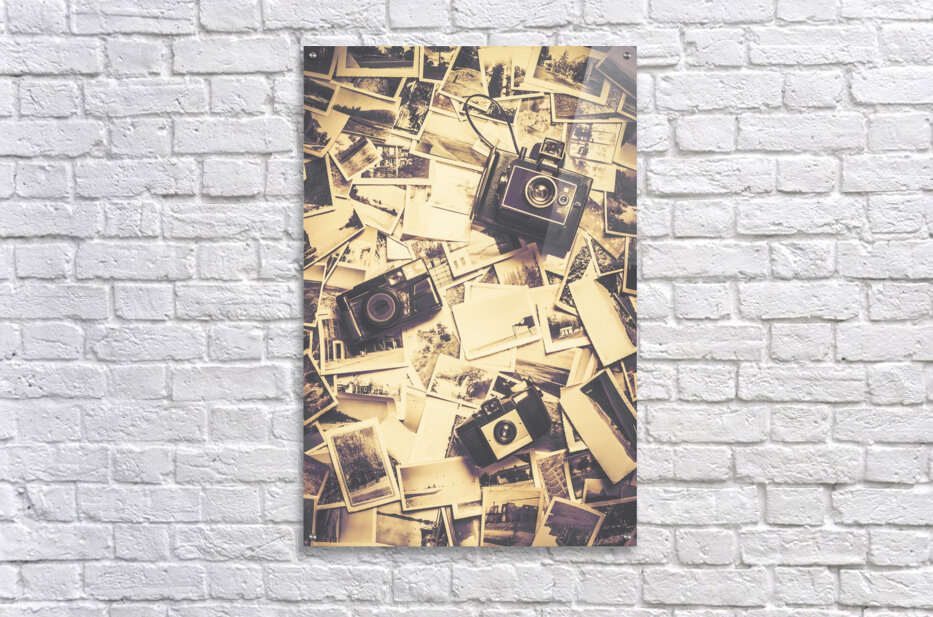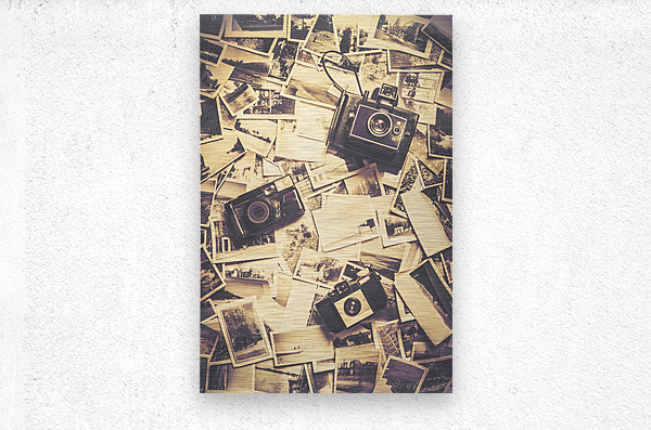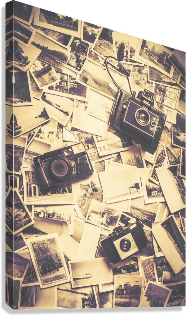 3 vintage analogue cameras on a visual archive of bygone photos. Visual stories from past times