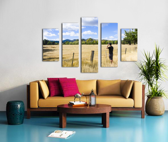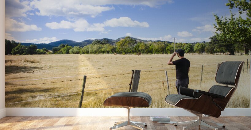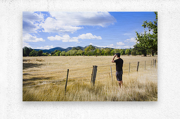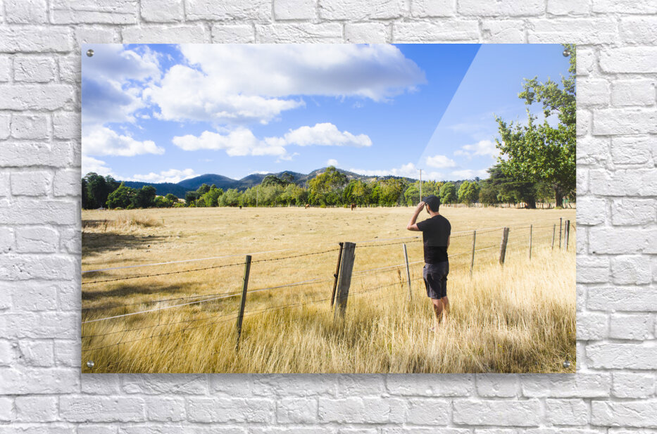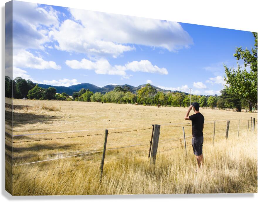 Get this artwork "Man enjoying a rural farm landscape in Hobart" in a framed print.