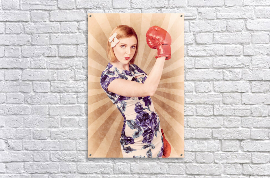 ABOUT THIS ARTWORK: RETRO PINUP BOXING GIRL FIST PUMPING GLOVE HAND