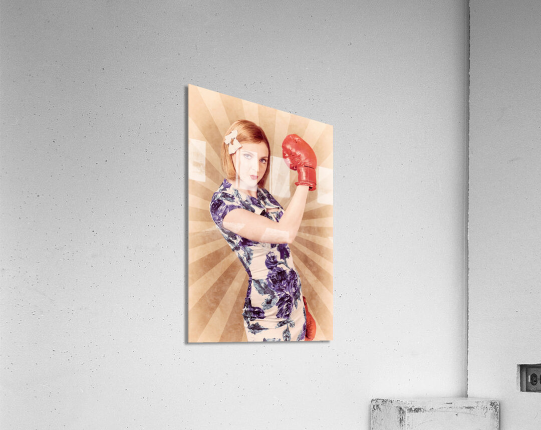 Retro pinup boxing girl fist pumping glove hand  Frame print