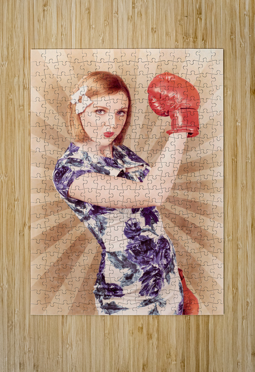 Retro pinup boxing girl fist pumping glove hand  Jorgo Puzzle printing