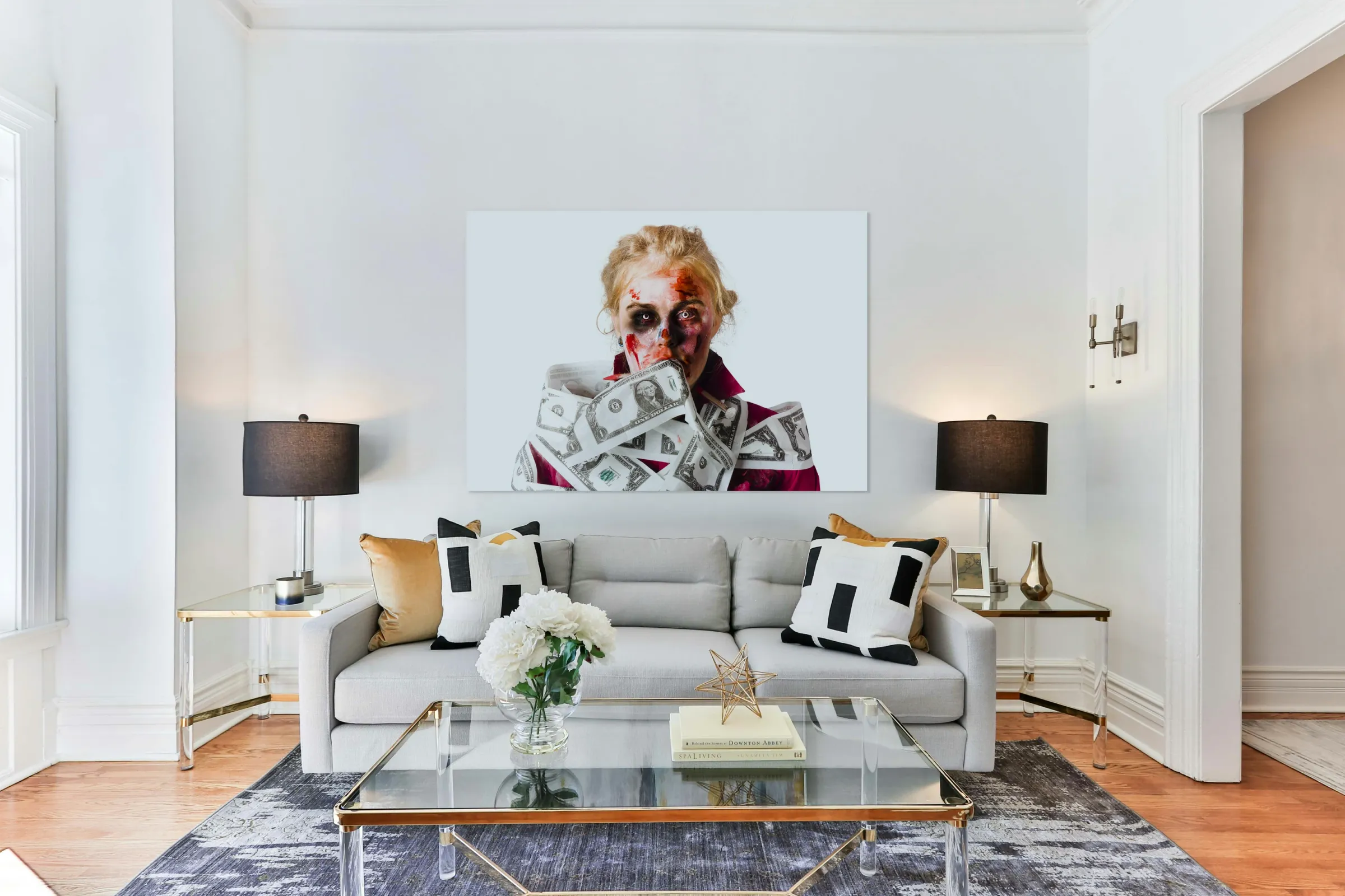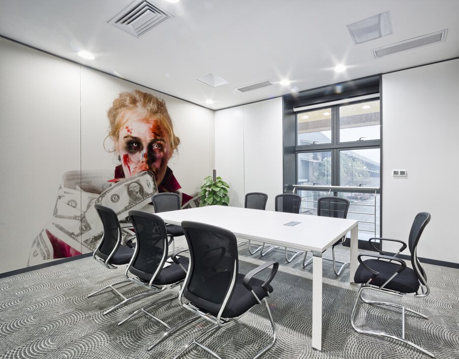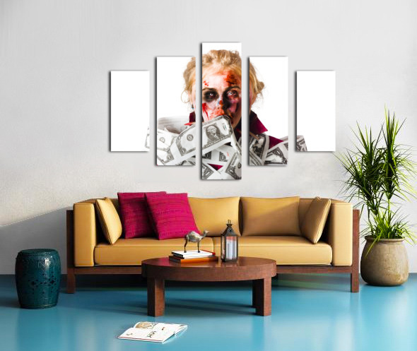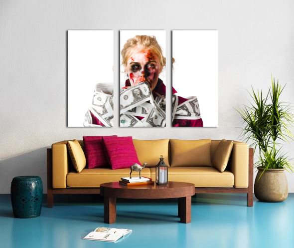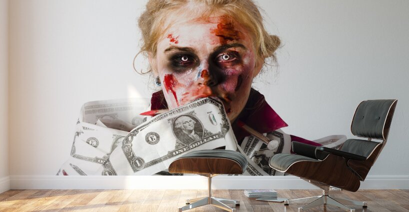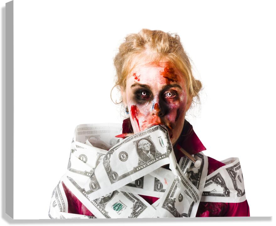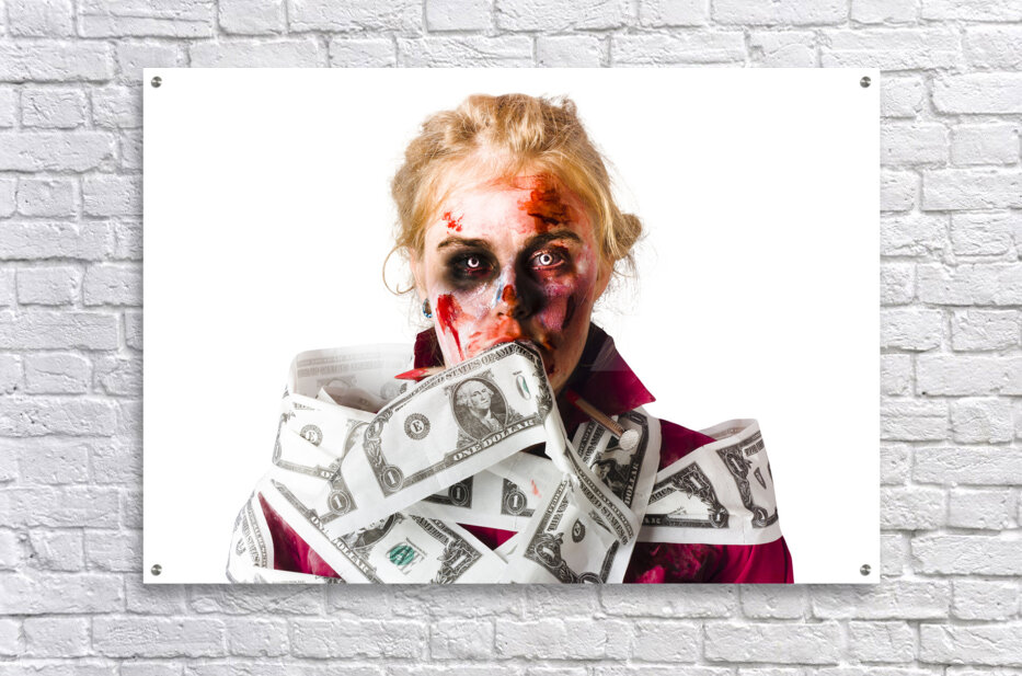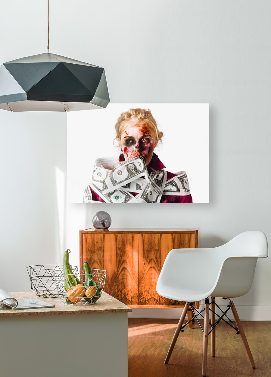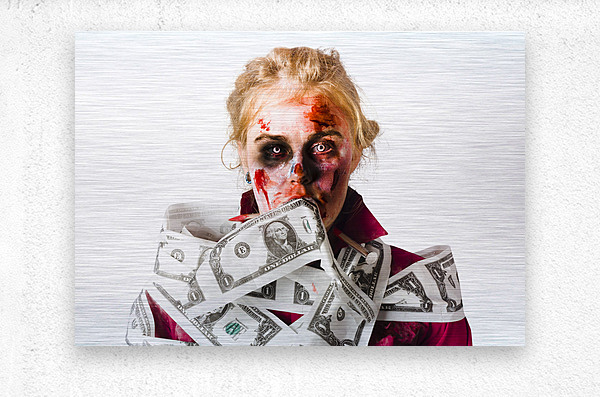 ABOUT THIS ARTWORK: WORRIED ZOMBIE WITH DOLLAR BILLS