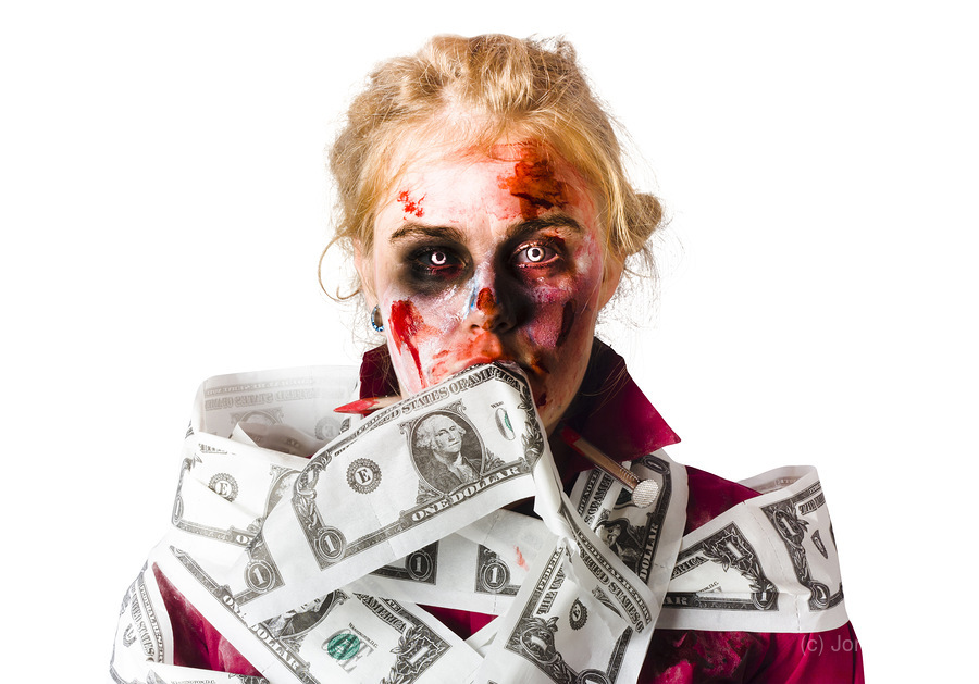 WORRIED ZOMBIE WITH DOLLAR BILLS