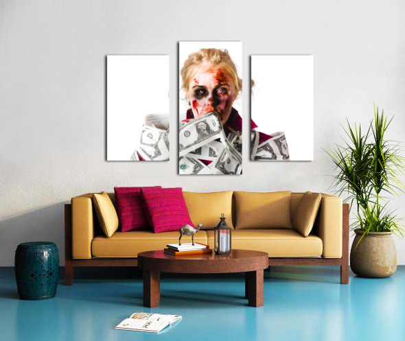 Get this artwork "Worried zombie with Dollar bills" in a framed print.