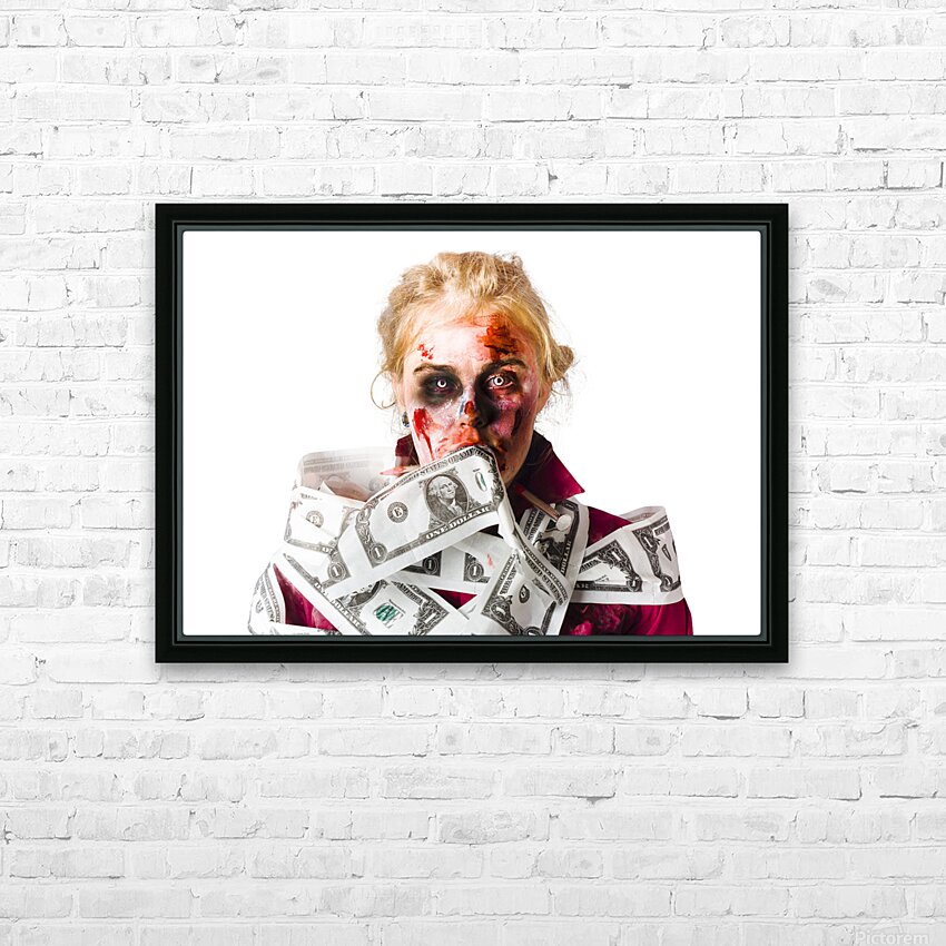 Worried zombie with Dollar bills Picture Frame Printing