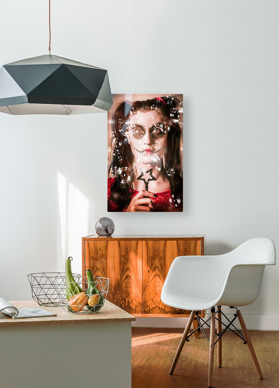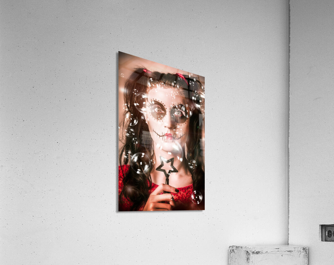 In Mexican tribal tradition a sugar skull girl celebrates the Day of the Dead Día de los Muertos in life and passing from the winds of change