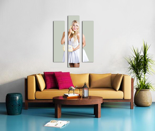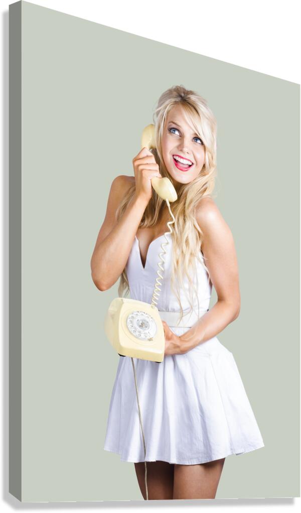 ABOUT THIS ARTWORK: 1960S HOT GOSSIP WOMAN WITH RETRO TELEPHONE