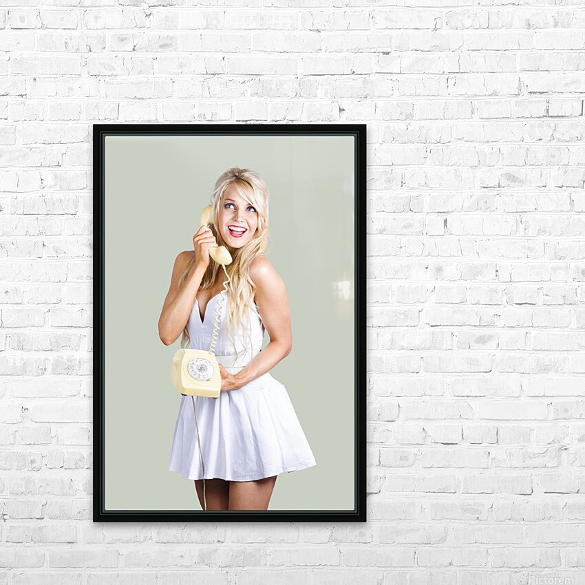 1960s hot gossip woman with retro telephone Picture Frame Printing