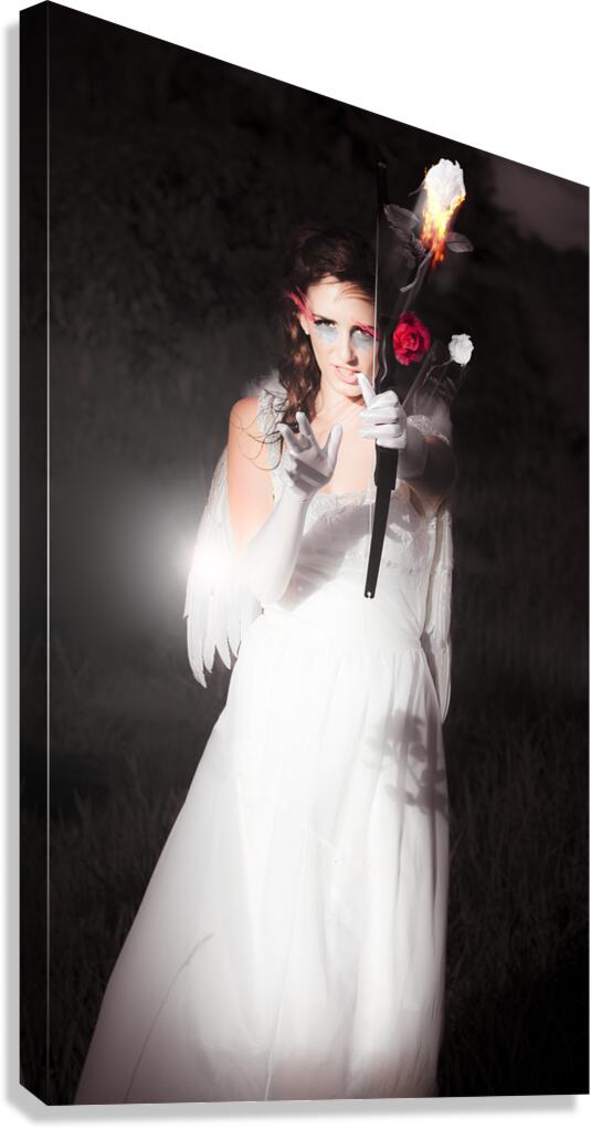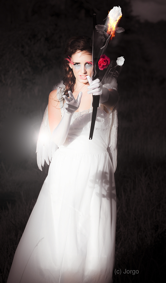 Setting Ablaze The Flames Of Love Cupid Shoots A Flaming Rose Arrow To Fire Up The Burning Spark Of Love In A Concept Of Romance Passion And Connectio...[+]