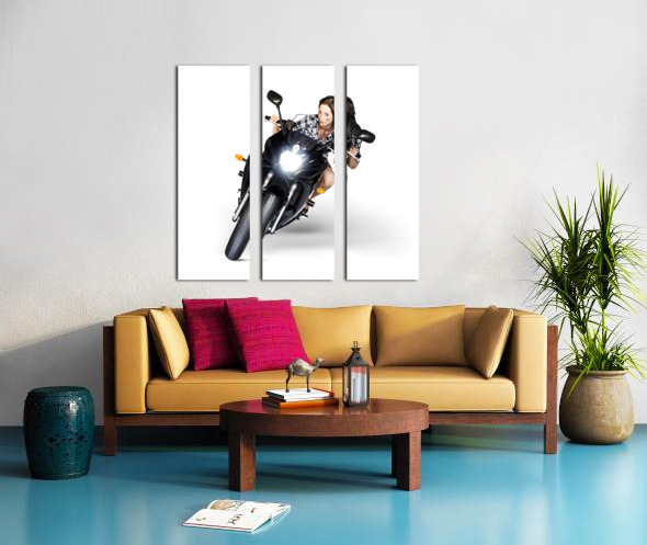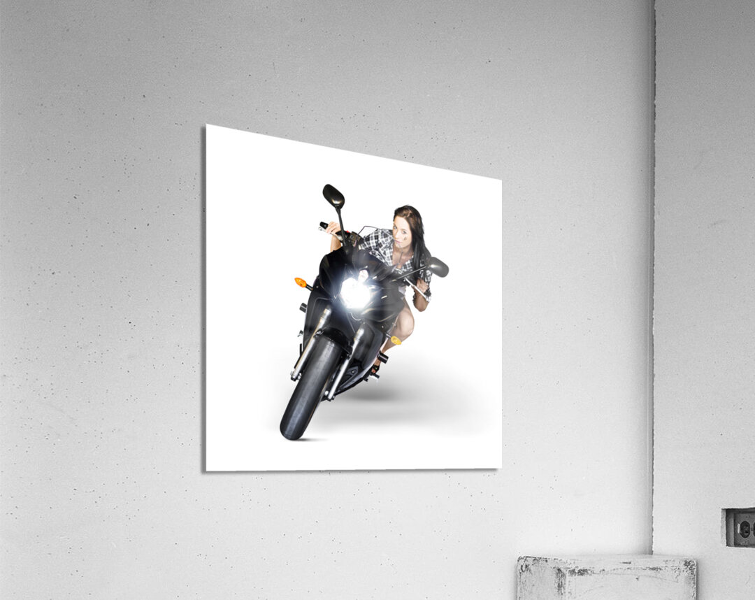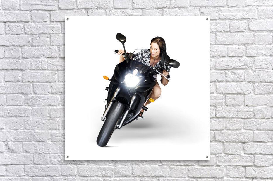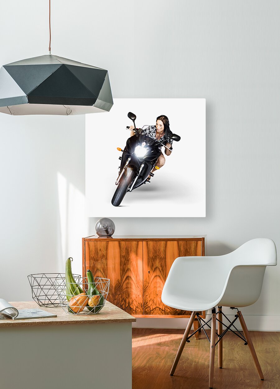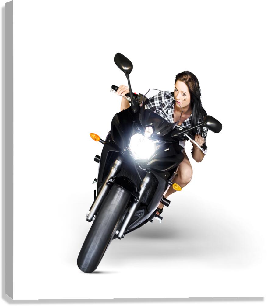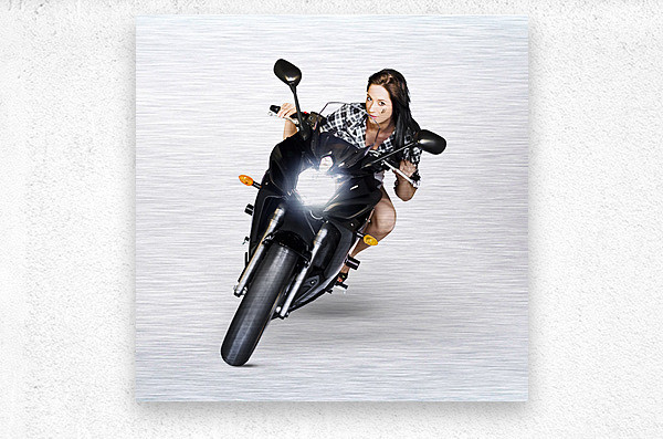Get this artwork "Woman Riding Motorbike At Speed" in a framed print.