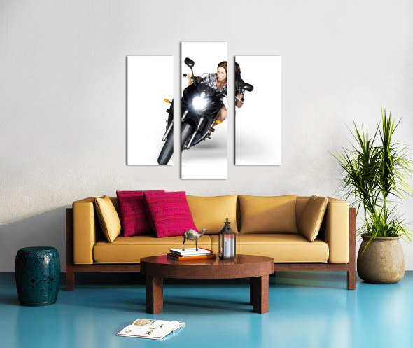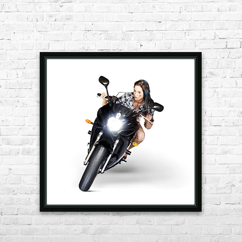 Woman Riding Motorbike At Speed Picture Frame Printing