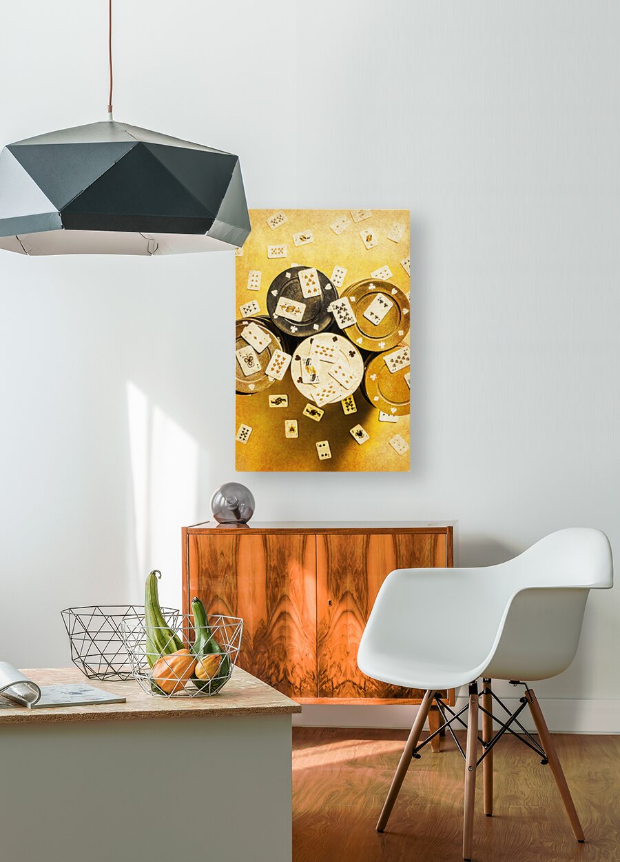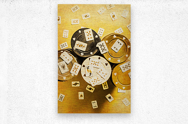 Stacked odds and big plays in a antique scene of scaled wild western poker with large chips and tiny cards from the golden frontier