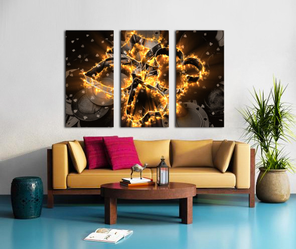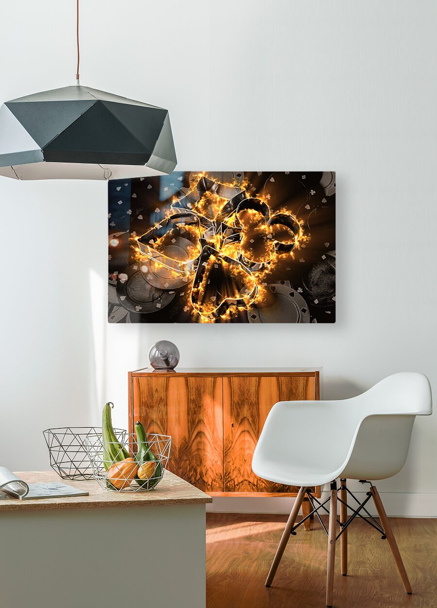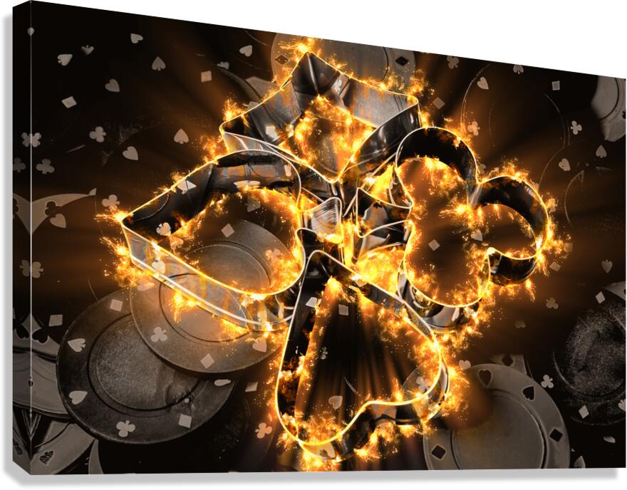 Creative fine art on a nightclub scene of gaming fire with burnt chips and hot plays