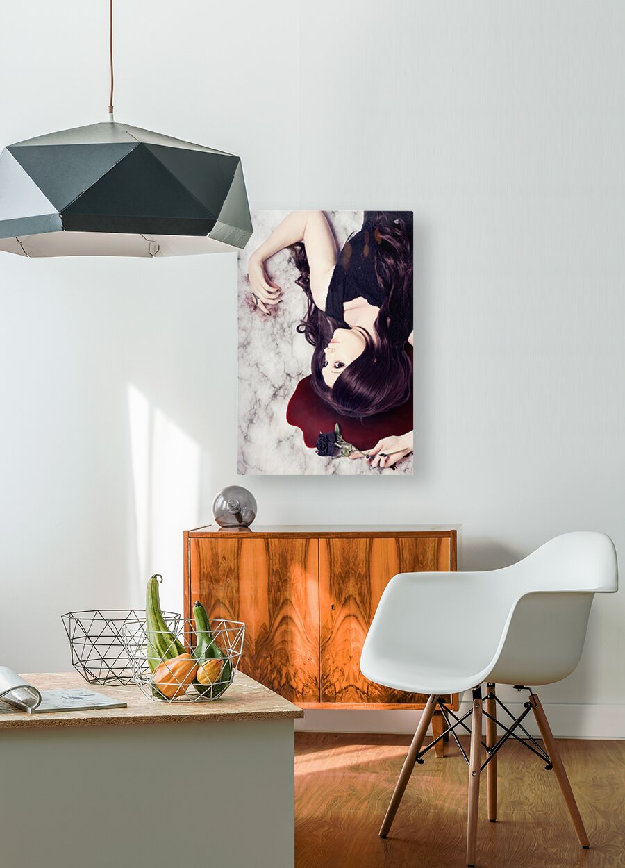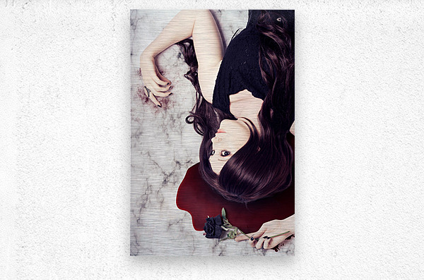 ABOUT THIS ARTWORK: DEAD WOMAN HOLDING BLACK FLOWER IN BLOOD PUDDLE