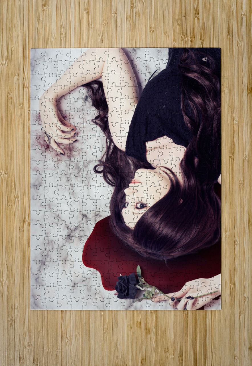 Dead woman holding black flower in blood puddle Jorgo Puzzle printing