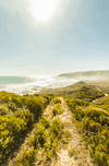 Sunny seaside track of epic adventure with an outback trail to Trial Harbour West Coast Tasmania Australia
