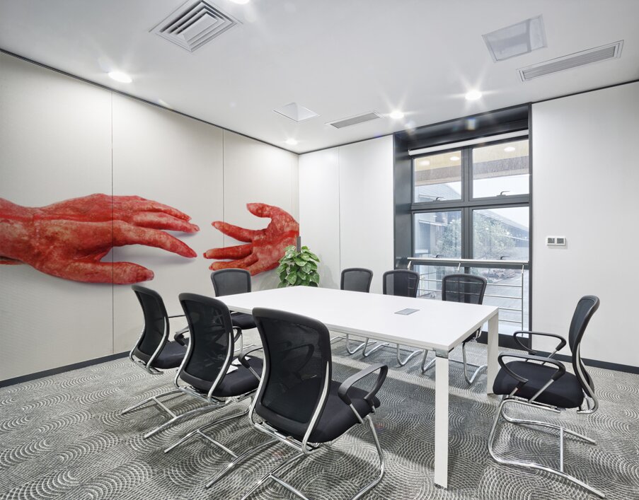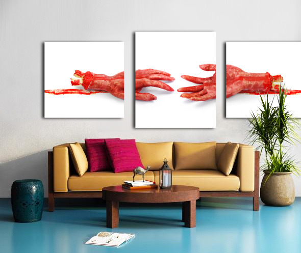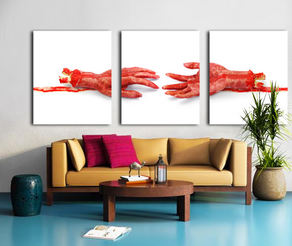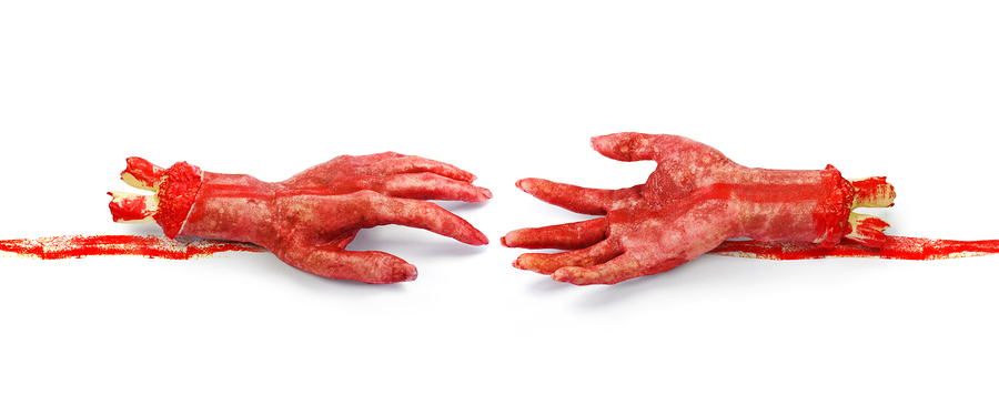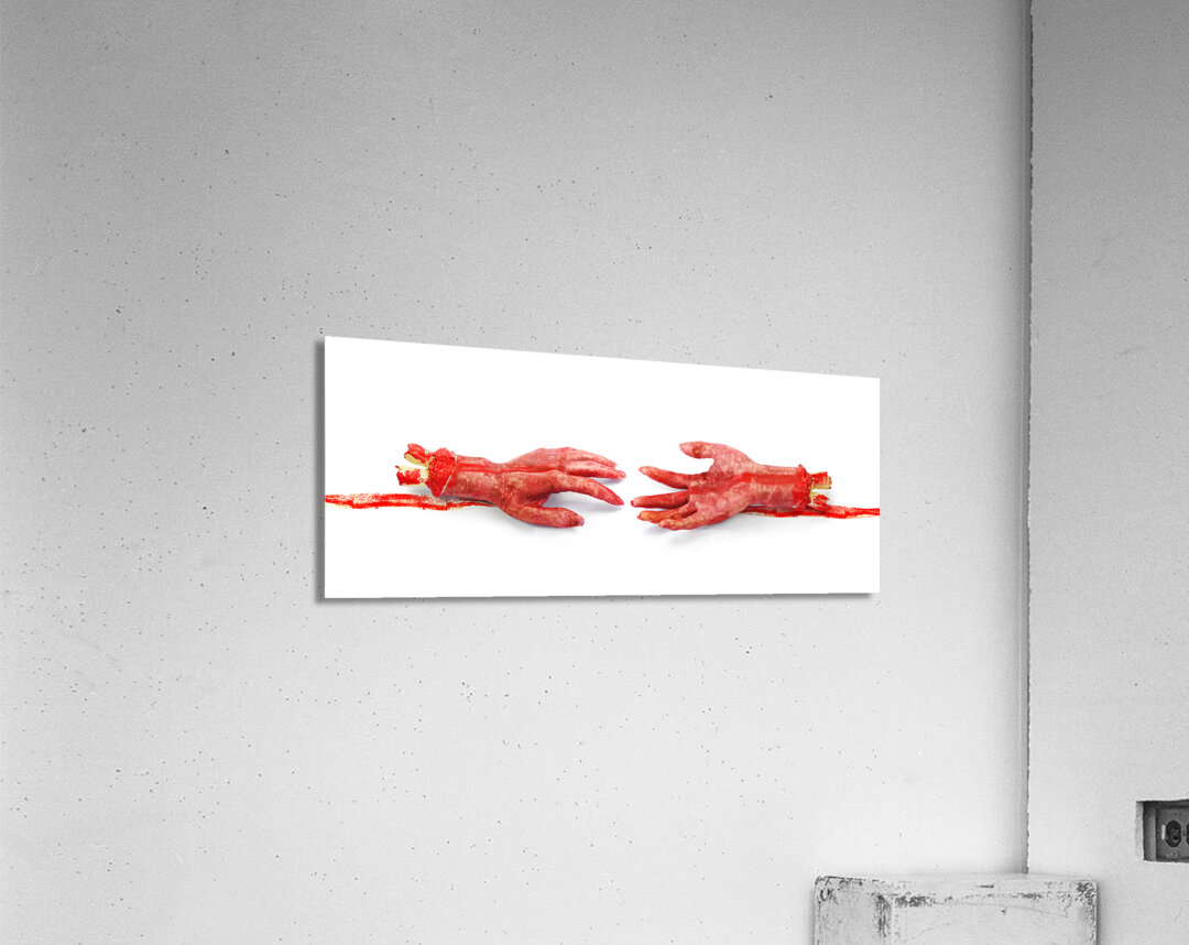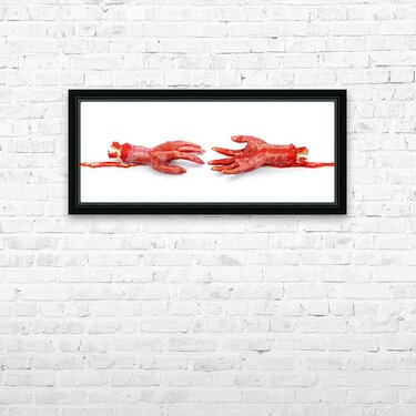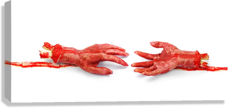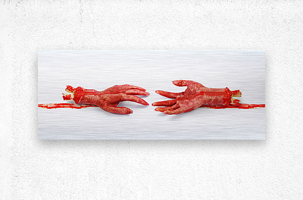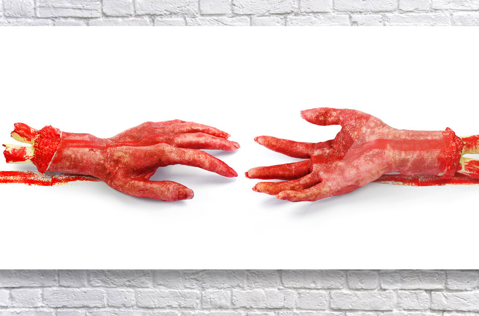 Two Bloody Severed Hands Stretch Out Towards One Another To Bridge The Gap Of The Dearly Departed Until Death Do Us Part