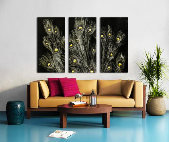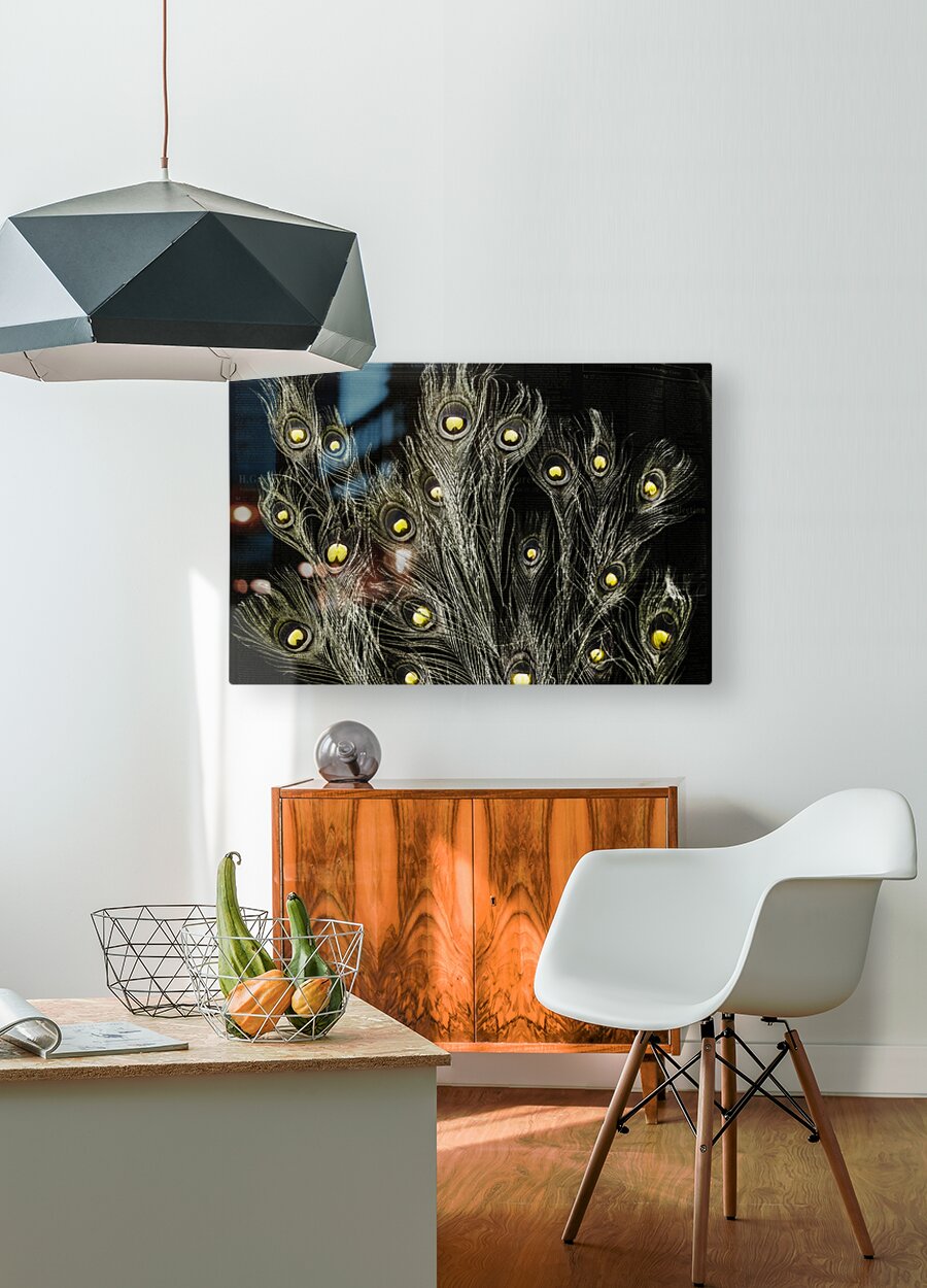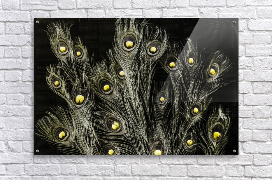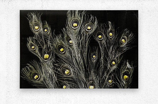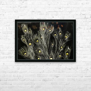 Scene of ghostly exoticness with contemporary peacock feathers watching the watcher. Of many eyes