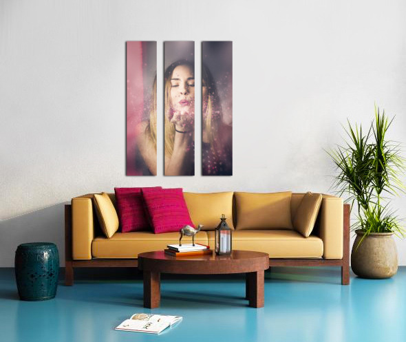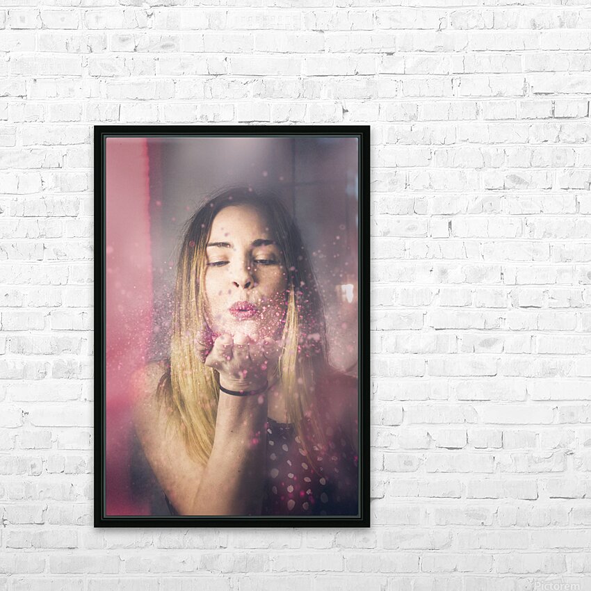 Valentine girl making wish kiss Picture Frame Printing