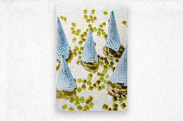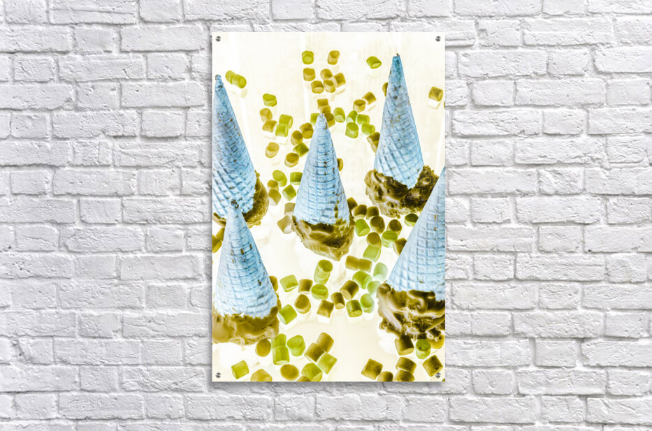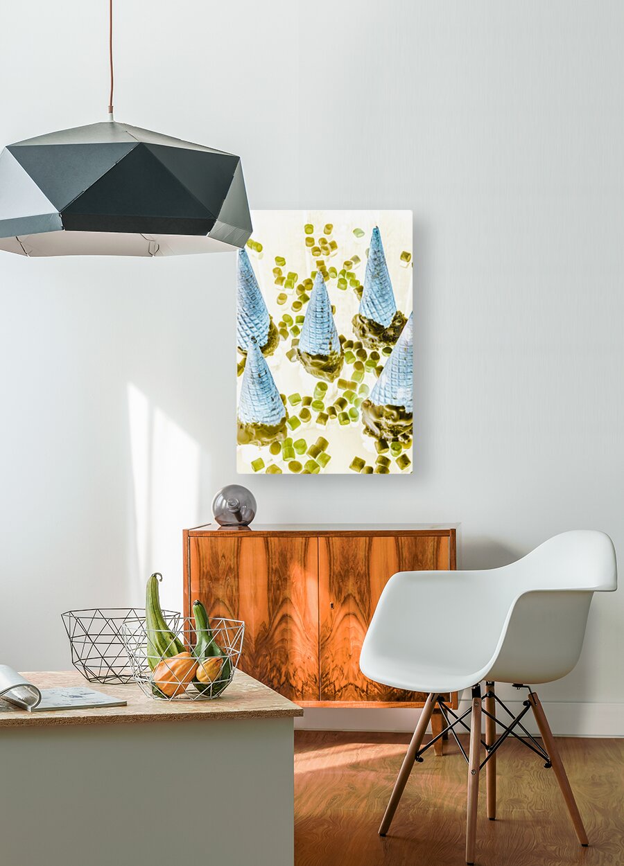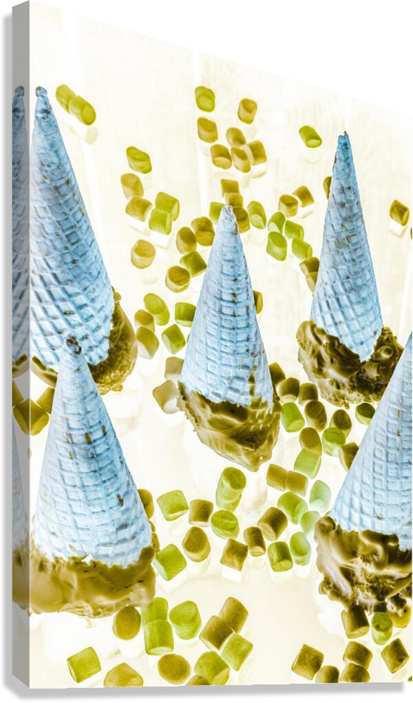 Retro food artwork on a mix of marshmallows and chocolate ice-cream cones. Summer inversion