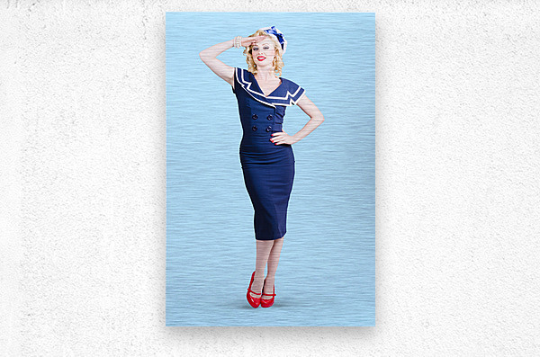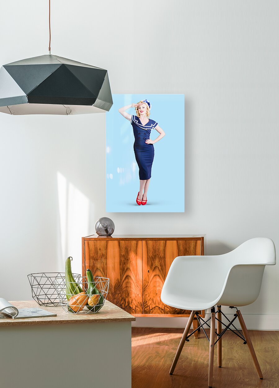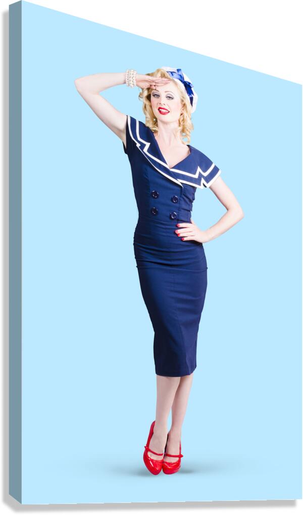 Young retro pinup girl wearing sailor uniform Picture Frame Printing