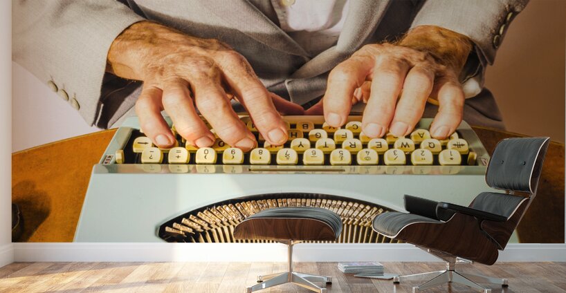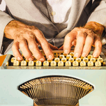 Scripted scene in the vintage type with typewriting tales and pressing plots