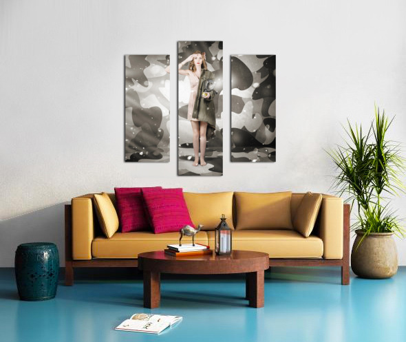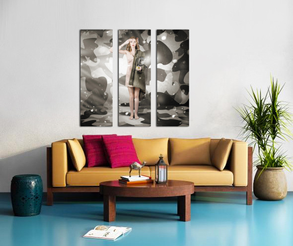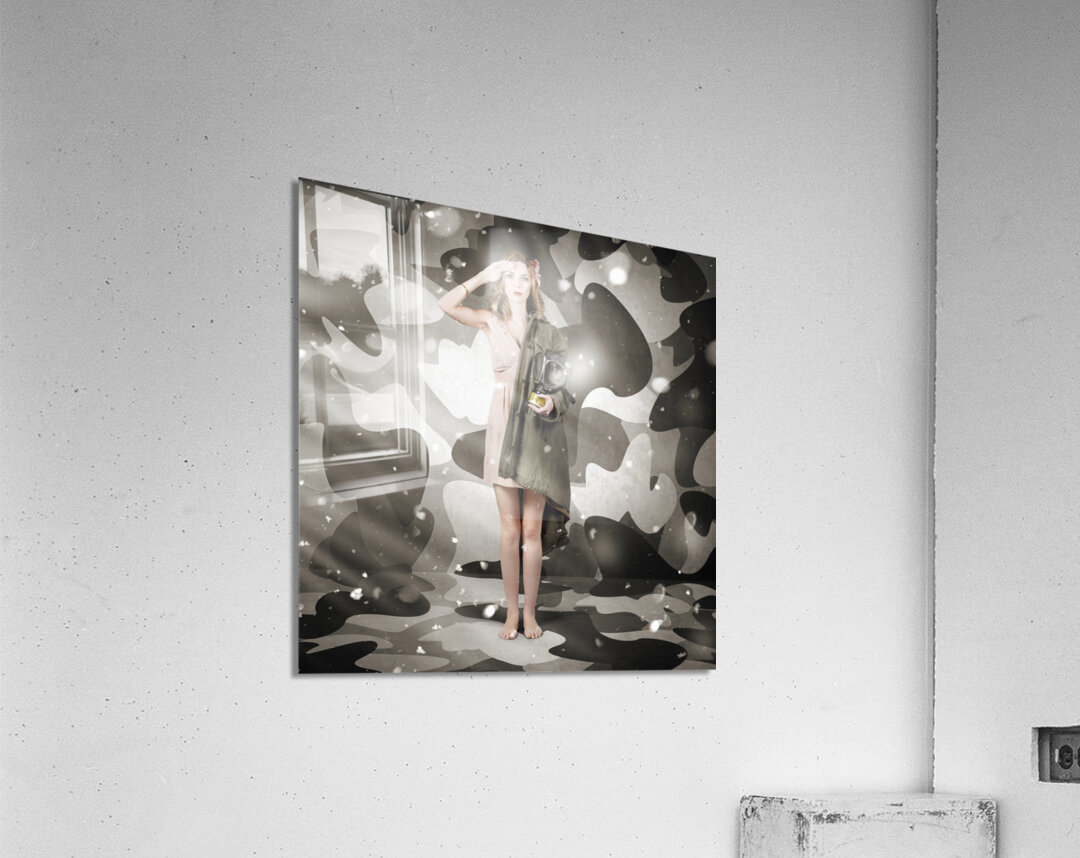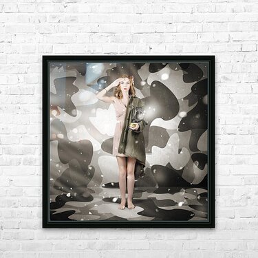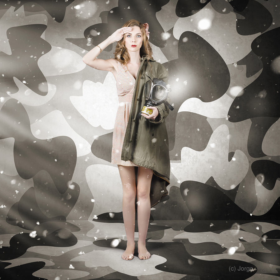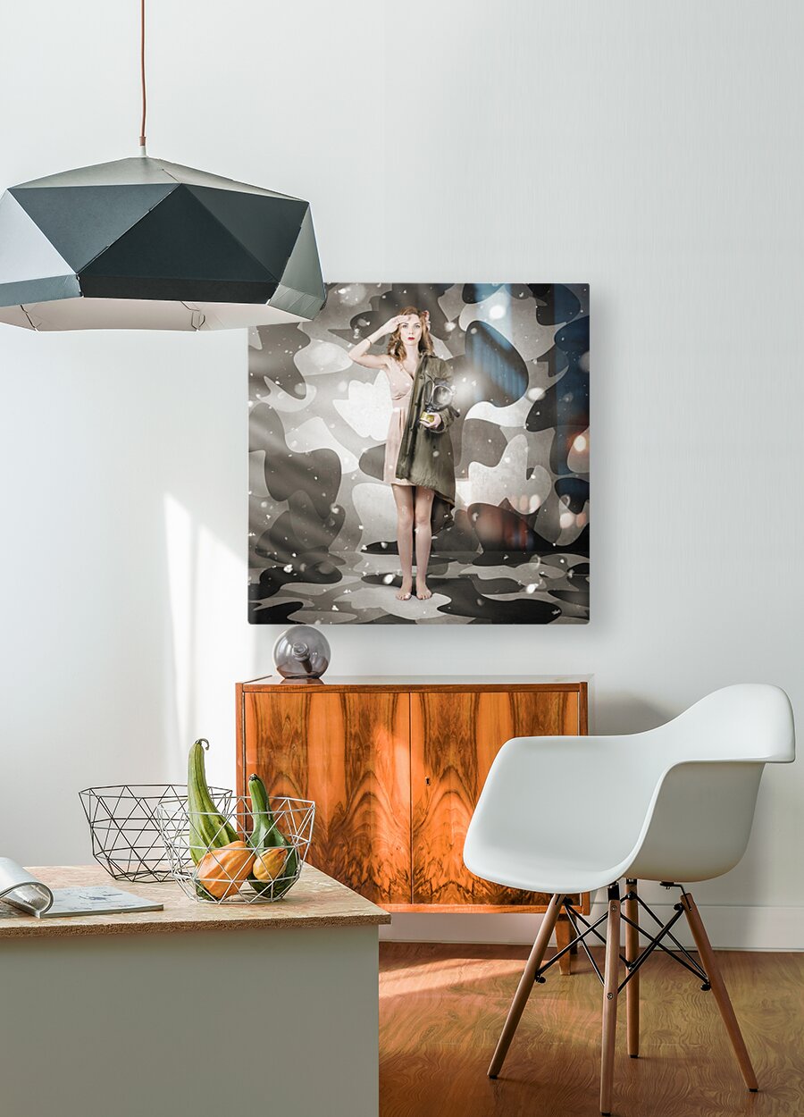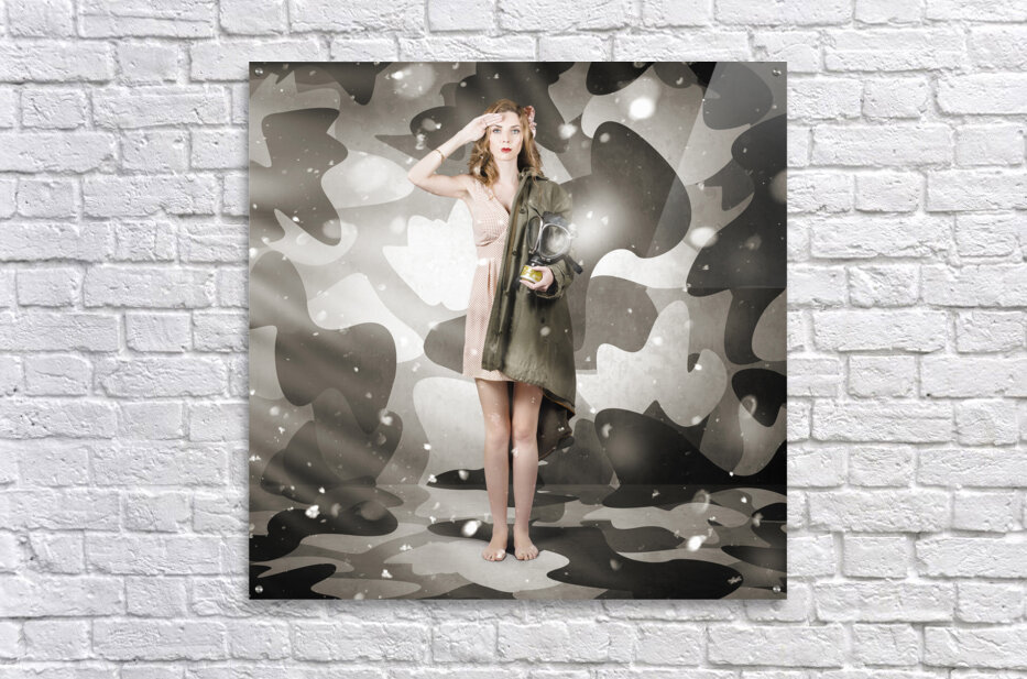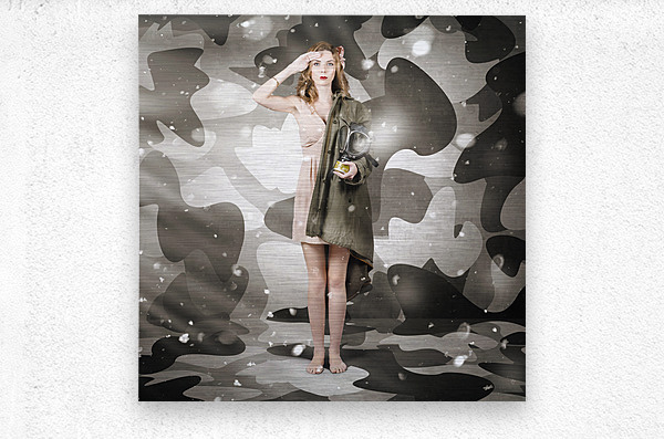 ABOUT THIS ARTWORK: SEXY ARMY GIRL SALUTING ON SNOW CAMO BACKGROUND