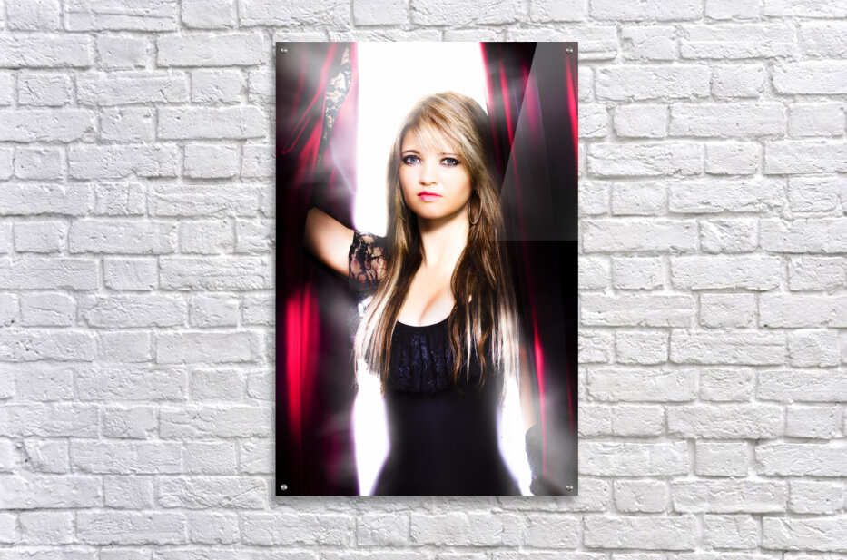 ABOUT THIS ARTWORK: FEMALE PERFORMER BEHIND THE STAGE CURTAIN LIGHT