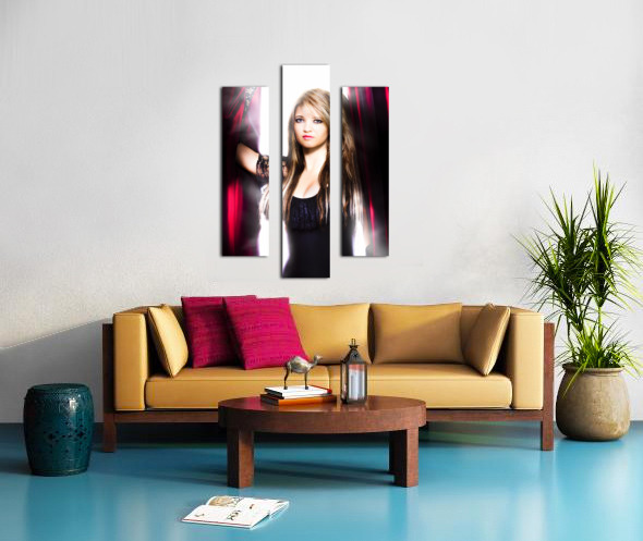 Get this artwork "Female performer behind the stage curtain light" in a framed print.